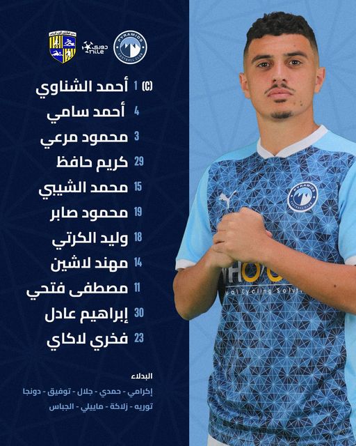 وجاء تشكيل بيراميدز لمواجهة المقاولون كالتالي: