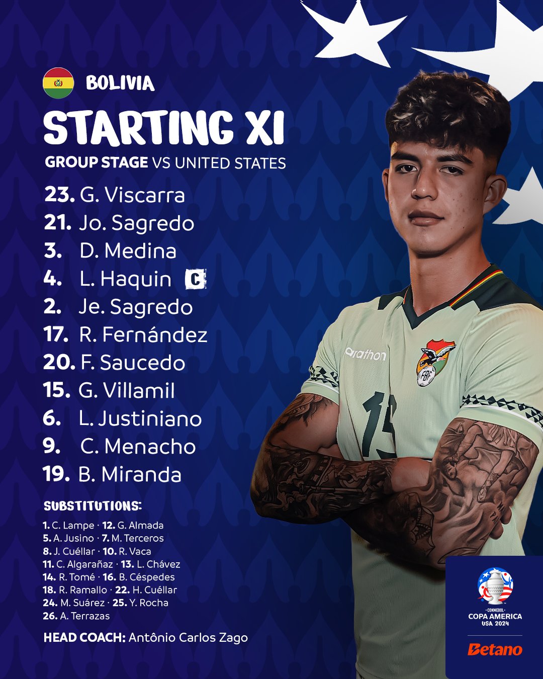 فيما جاء تشكيل المنتخب البوليفي على النحو التالي: