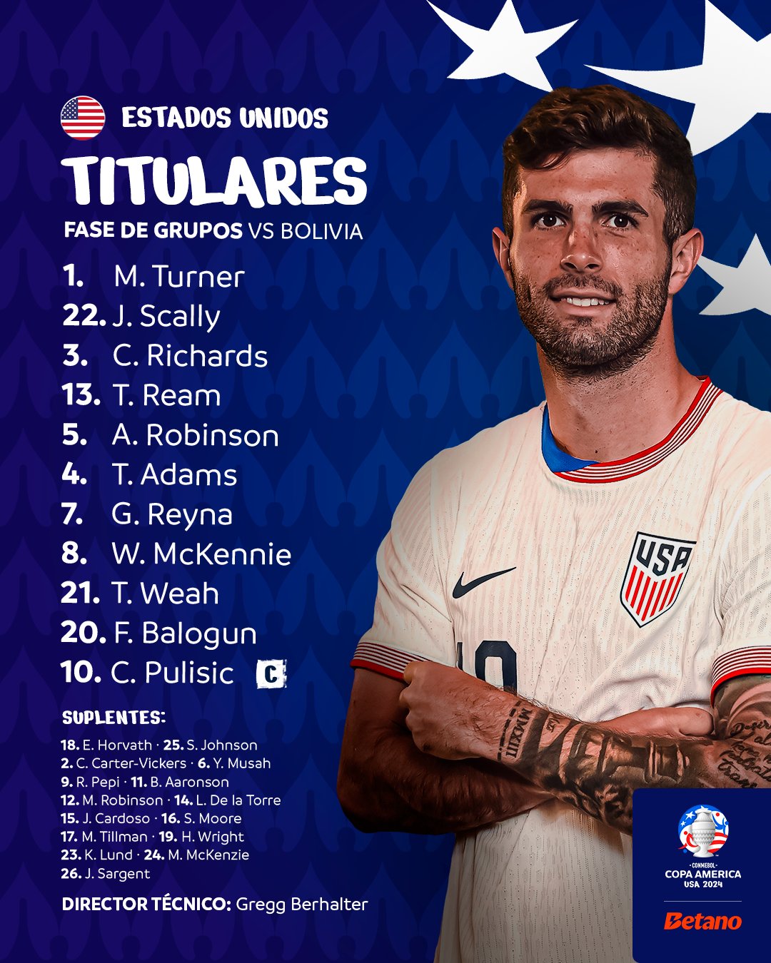كوبا أمريكا 2024، فاز منتخب أمريكا على بوليفيا بنتيجة 2-0، في المباراة التي جمعتهما صباح اليوم الإثنين، في افتتاح مباريات المجموعة الثالثة ببطولة كوبا أمريكا 2024، على ملعب دالاس كاوبويز.