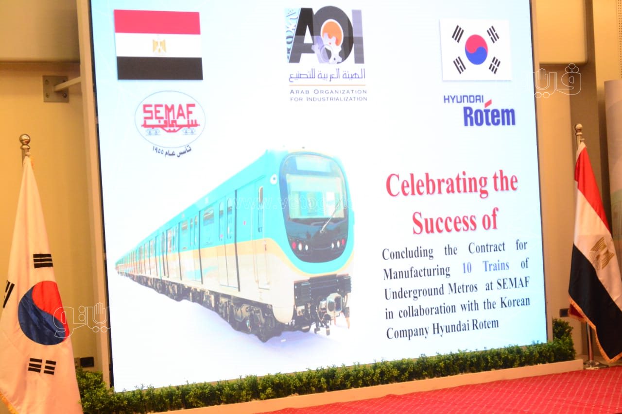 شهد اللواء مهندس "مختار عبد اللطيف " رئيس الهيئة العربية للتصنيع احتفالية إنجاز وتصنيع (10) قطارات مترو أنفاق مكيفة بإجمالي (80) عربة مترو من إنتاج مصنع مهمات السكك الحديدية "سيماف" التابع للهيئة، بالتعاون مع شركة هيونداي روتم الكورية الجنوبية .