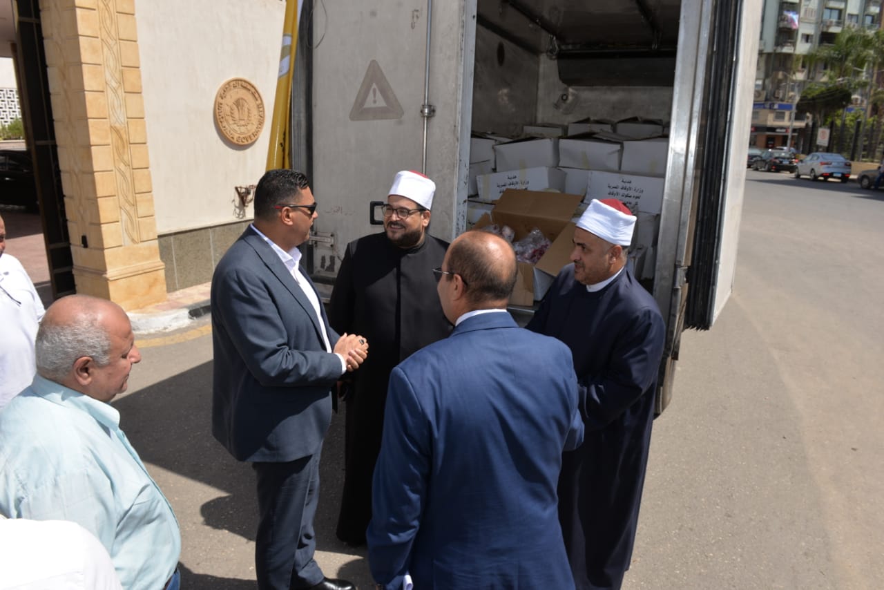 وثمن مختار جهود وزارة الأوقاف والتضامن الاجتماعي من خلال توزيع صكوك لحوم الأضاحي وإطعام الطعام وشنط المواد الغذائية على الأسر الأولى بالرعاية على مستوى الجمهورية.
