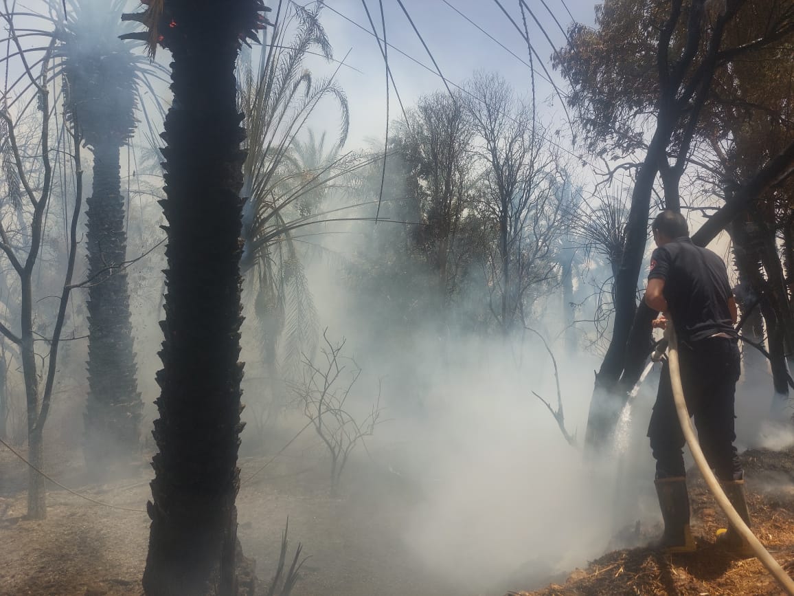 إخماد حريق هائل في مزرعة نخيل وحظيرة بالوادي الجديد