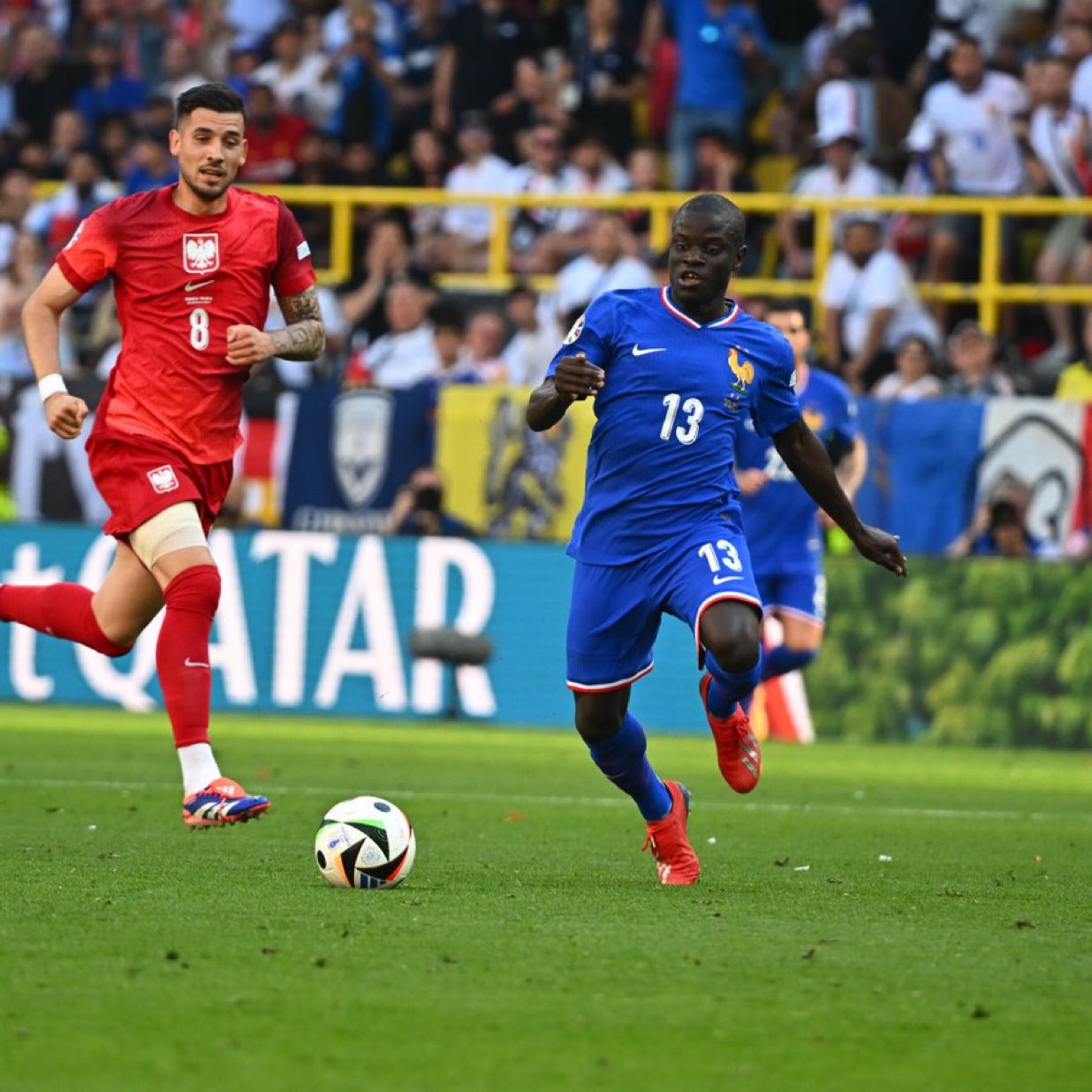 وفي الدقيقة 18، أهدر عثمان ديمبلي فرصة هدف مؤكد بعد انفراده بحارس بولندا عقب تمريرة بينية من نجولو كانتي، إلا أنه سددها في جسد حارس بولندا.