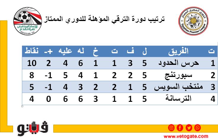 دورة الترقي، تختتم اليوم الأربعاء مباريات الدورة الرباعية المؤهلة لبطولة الدوري المصري الممتاز بمشاركة 4 فرق وهم حرس الحدود وسبورتنج ومنتخب السويس والترسانة.
