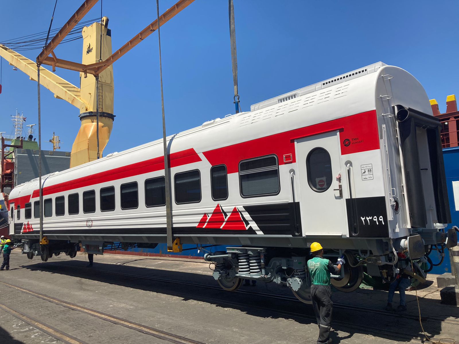 وصول 16 عربة ثالثة مكيفة جديدة و4 ماكينات لصيانة وتجديد السكة الحديد