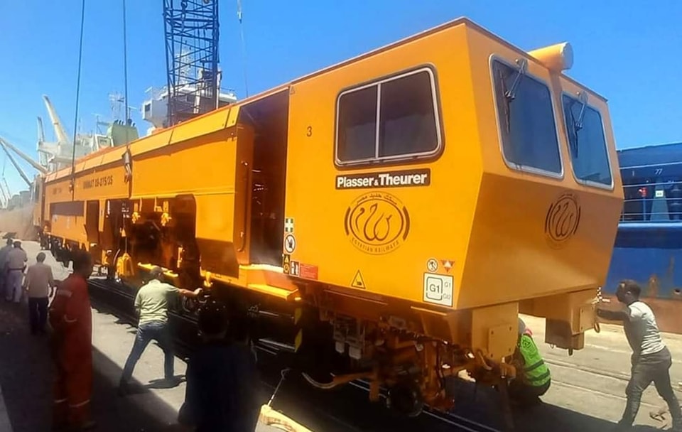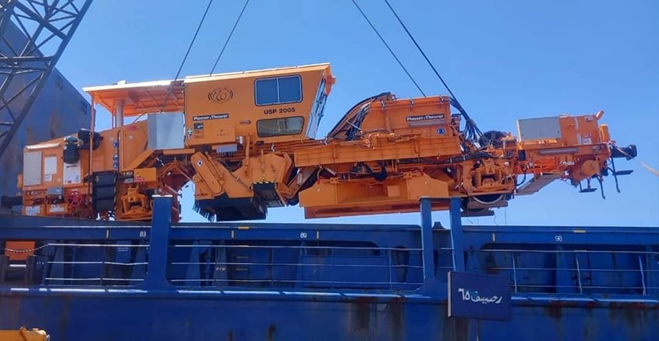 تسلمت الهيئة القومية للسكك الحديدة 4 ماكينات لصيانة وتجديد السكة (عدد 2 ماكينة دك تفريعات + عدد (2) ماكينة تشكيل بازلت) إلى ميناء الإسكندرية من أحدث الطرازات الموجودة في العالم.