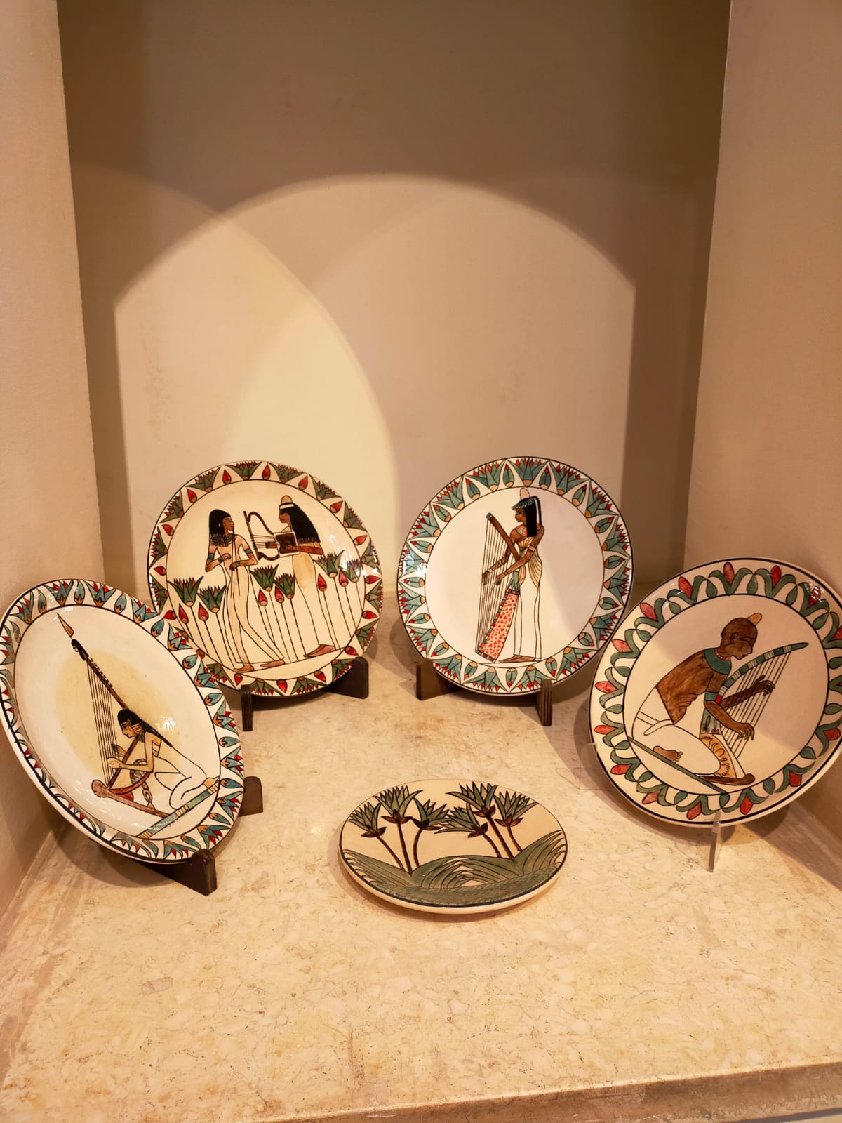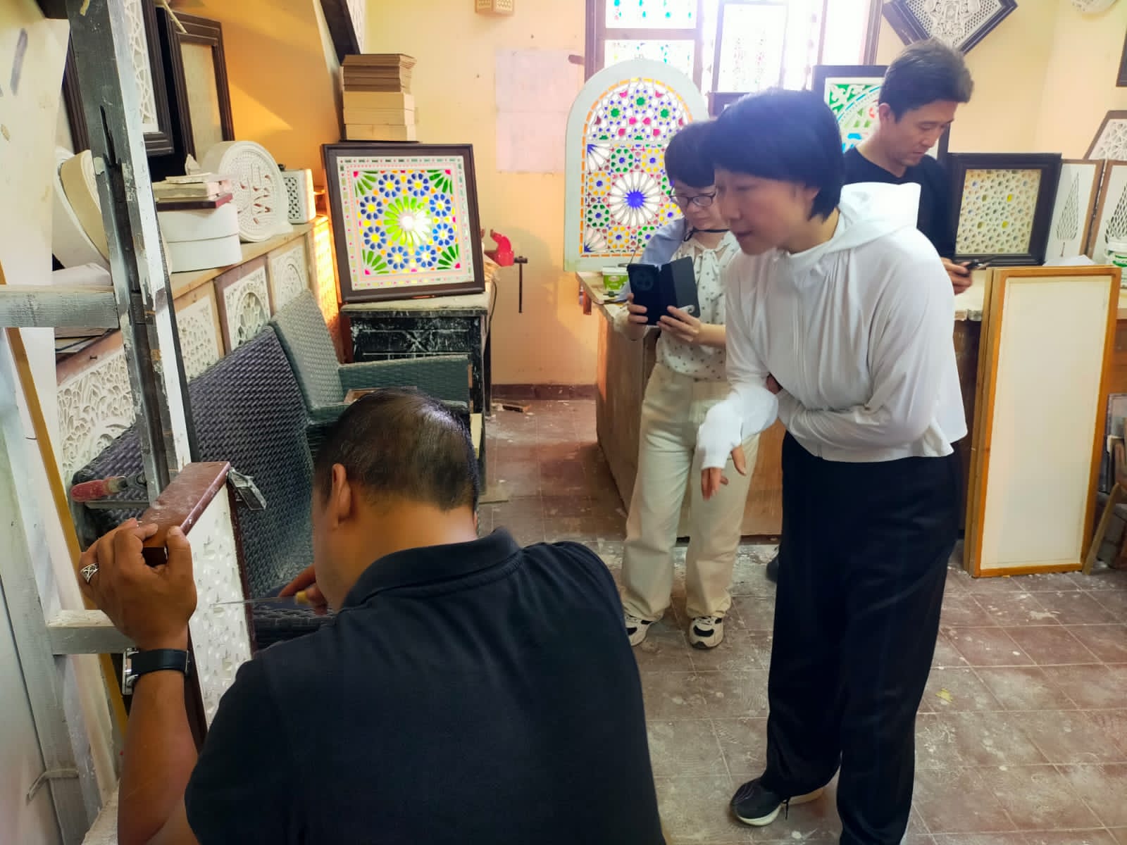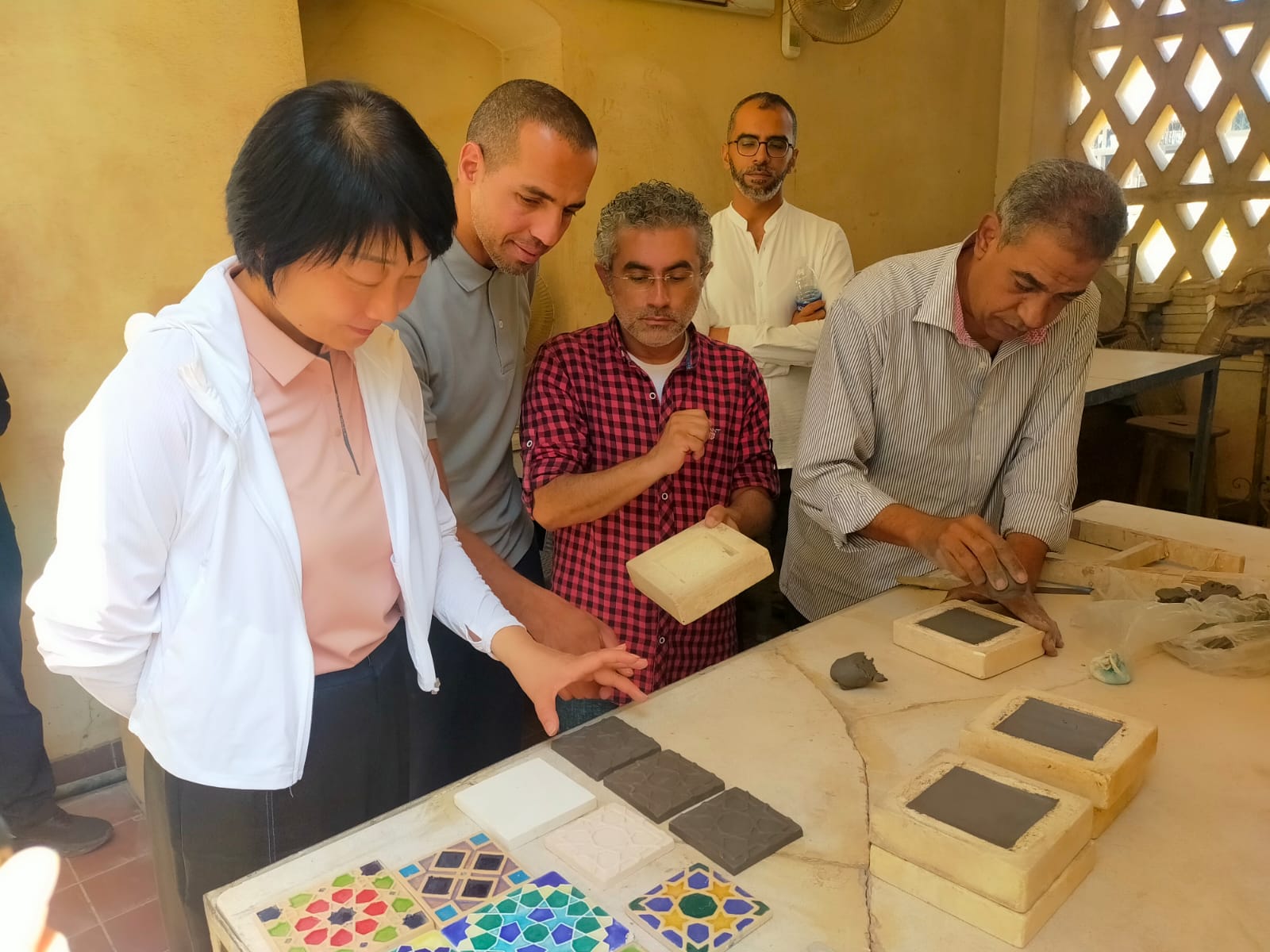 وقام الوفد بزيارة لمركز الحرف التقليدية بالفسطاط - التابع لقطاع الصندوق - حيث زاروا ورش التصنيع واتيليهات الفنانين للرسم على الخزف وتصنيعه، وكذلك أعمال النحاس والارابيسك.