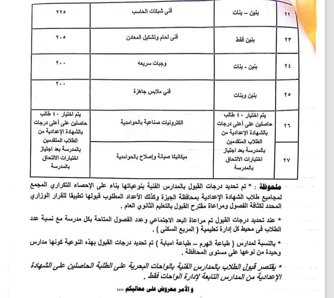 أعلن اللواء أحمد راشد، محافظ الجيزة، عن تنسيق القبول بالتعليم والتدريب المزدوج للمهن للعام الدراسي 2024 /2025، وذلك كالتالي: