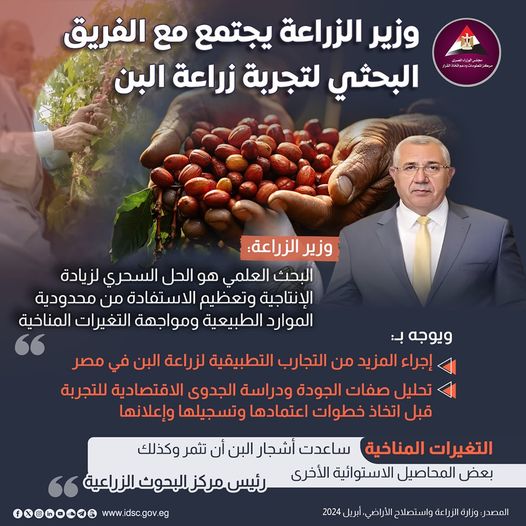زراعة البن والشاي، كشف الدكتور محمد فهيم مستشار وزير الزراعة، آخر تطورات تجارب زراعة الشاي في الفيوم وإنتاج البن في مصر.