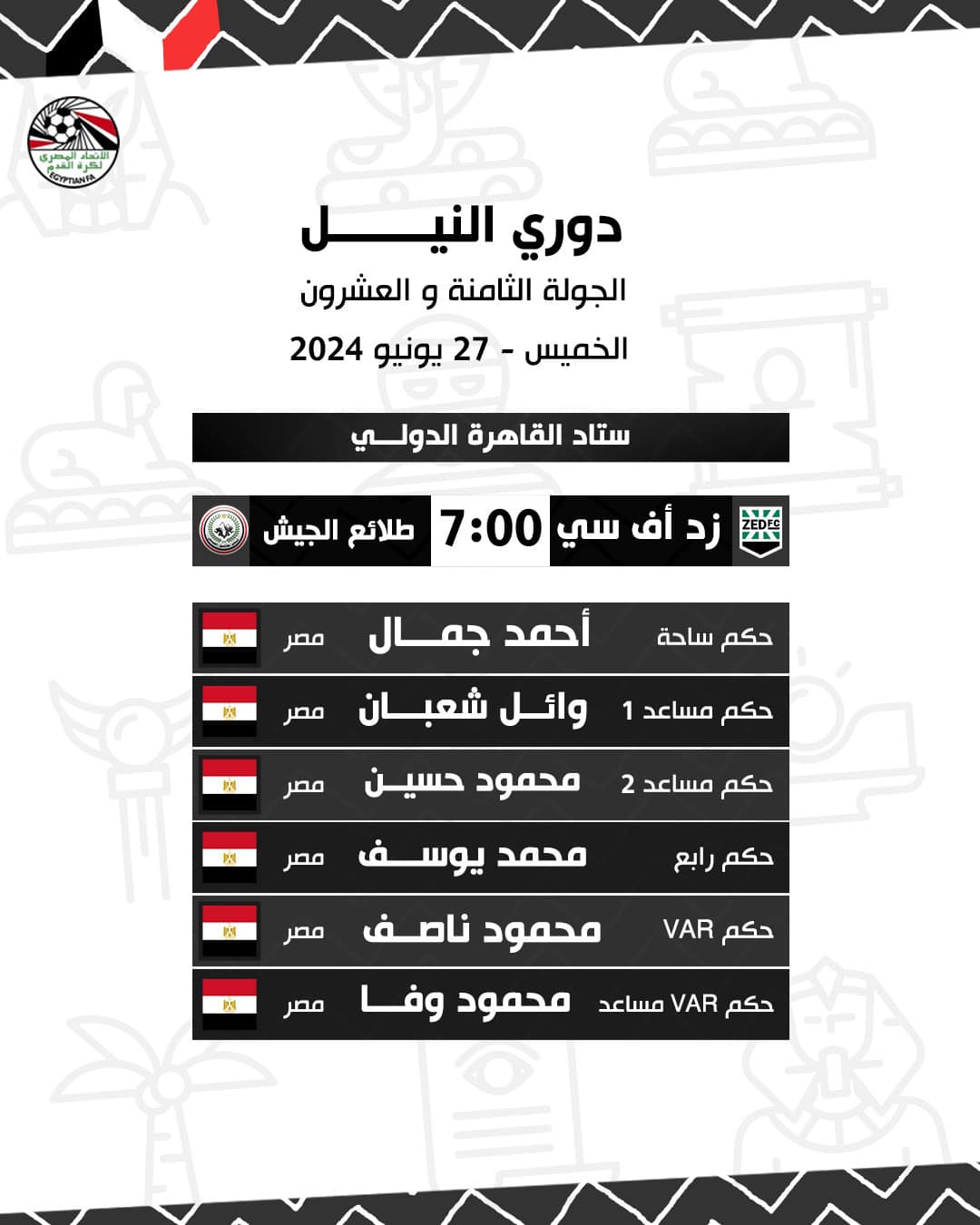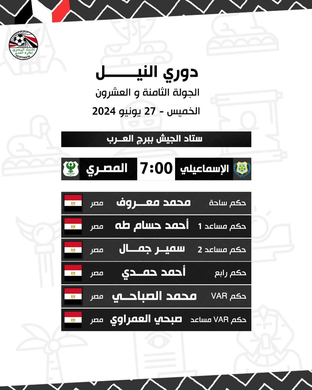 الدوري المصري، أعلنت لجنة الحكام الرئيسية بالاتحاد المصري لكرة القدم برئاسة البرتغالي فيتور بيريرا أسماء حكام مباريات غدا الخميس، ضمن منافسات الجولة 28 من الدوري المصري الممتاز.. وجاءت على النحو التالي:
