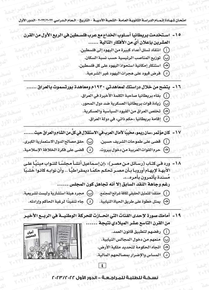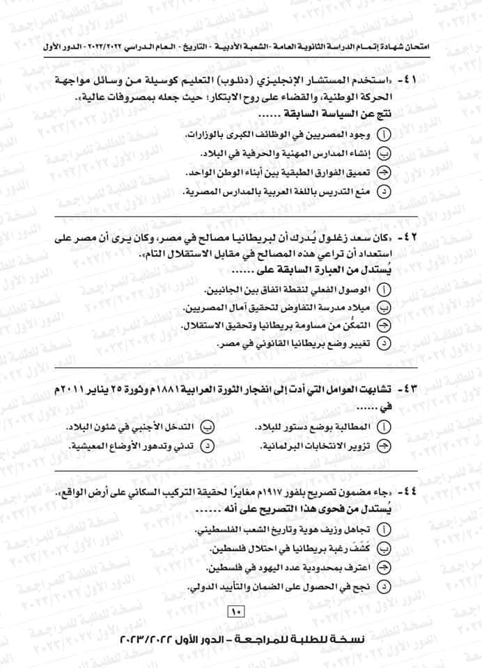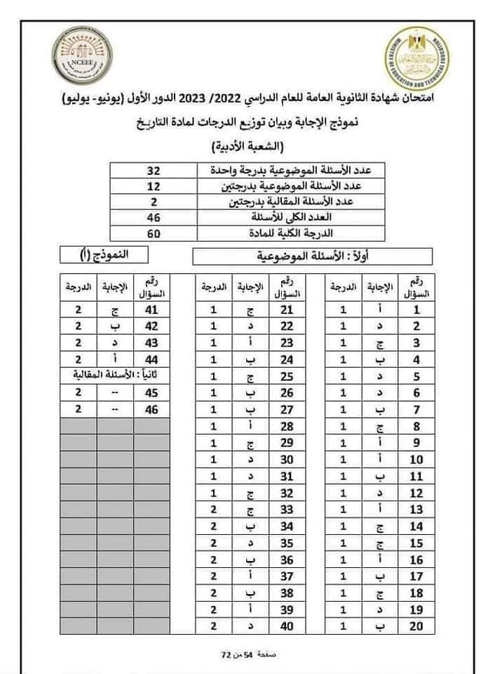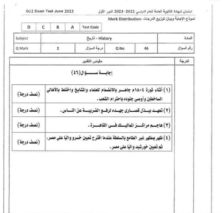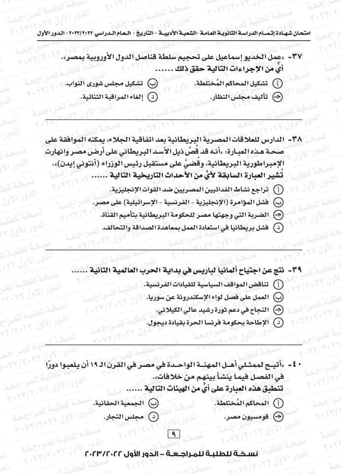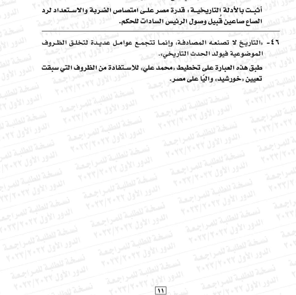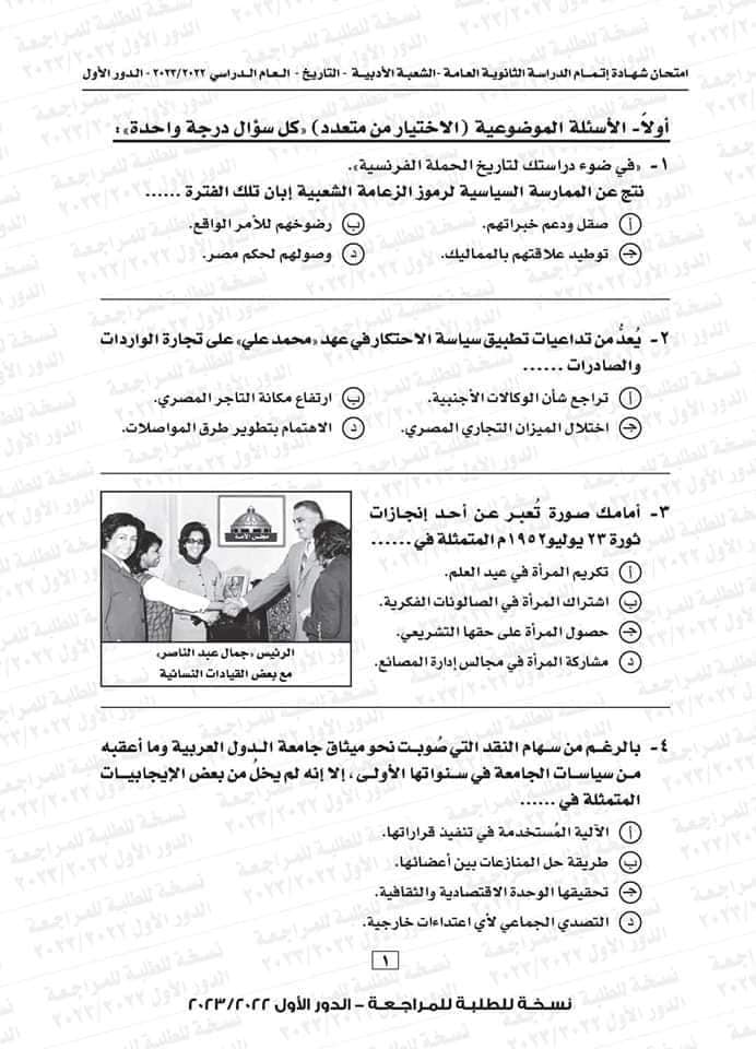 نموذج امتحان التاريخ العام الماضي 2023 لطلاب الثانوية العامة