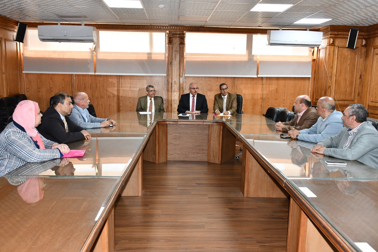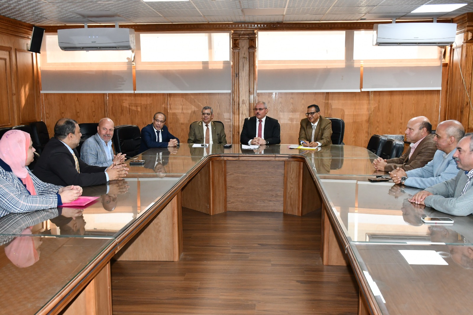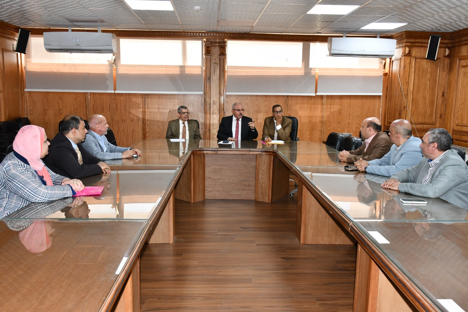 وأدار الدكتور ناصر مندور رئيس الجامعة حوار مفتوح مع أعضاء هيئة التدريس المرشحين لمنصب عميد كلية موضحًا خلاله أهم التحديات التى تواجه القيادة الجامعية وأساليب التغلب على كافة المشكلات بإستمرار العمل المكثف؛ لرفع جودة وكفاءة وتنافسية التعليم بكليات جامعة قناة السويس.