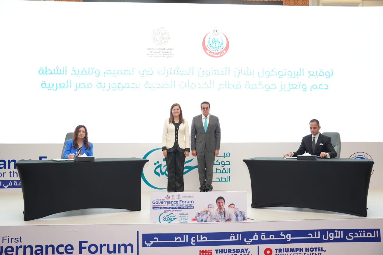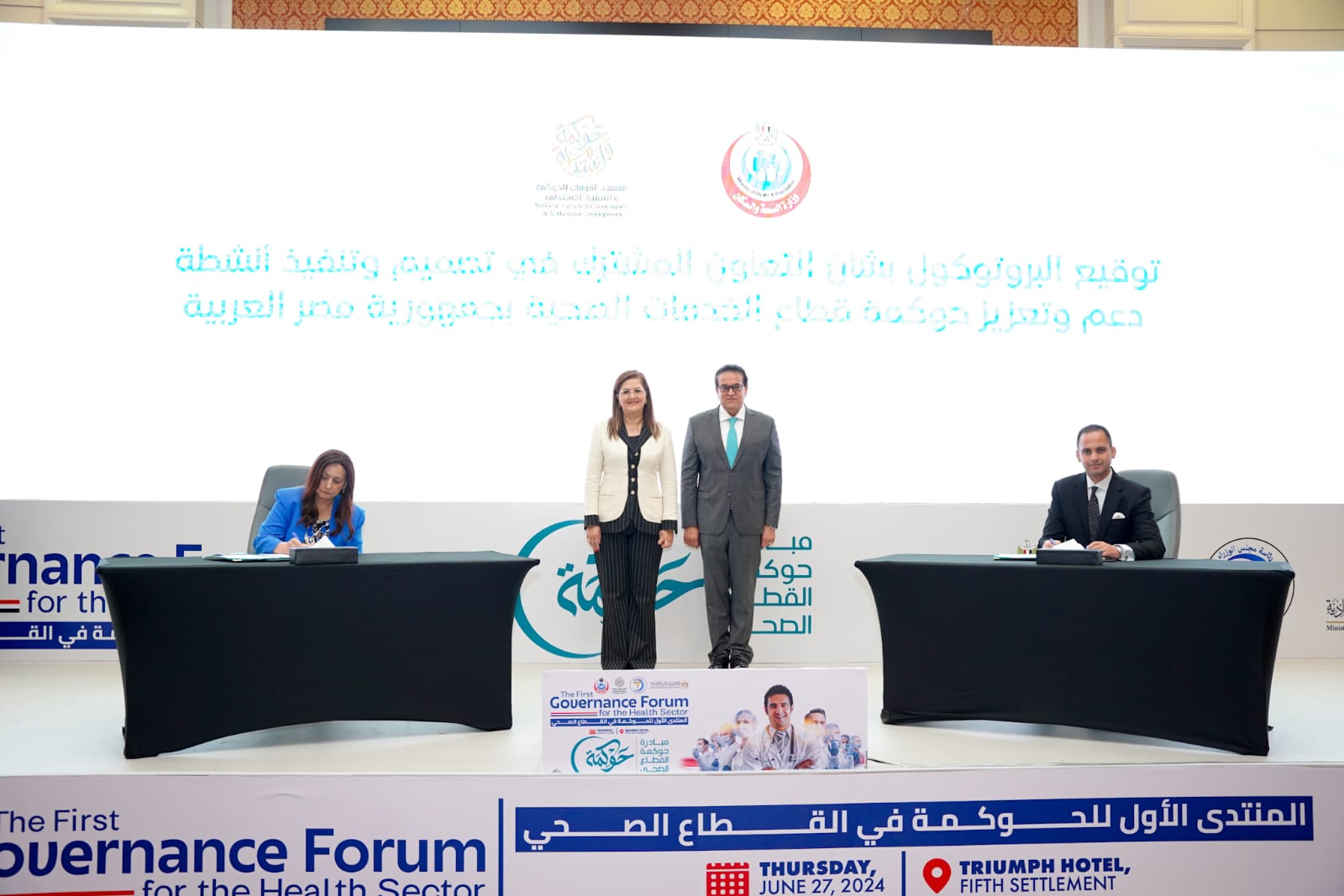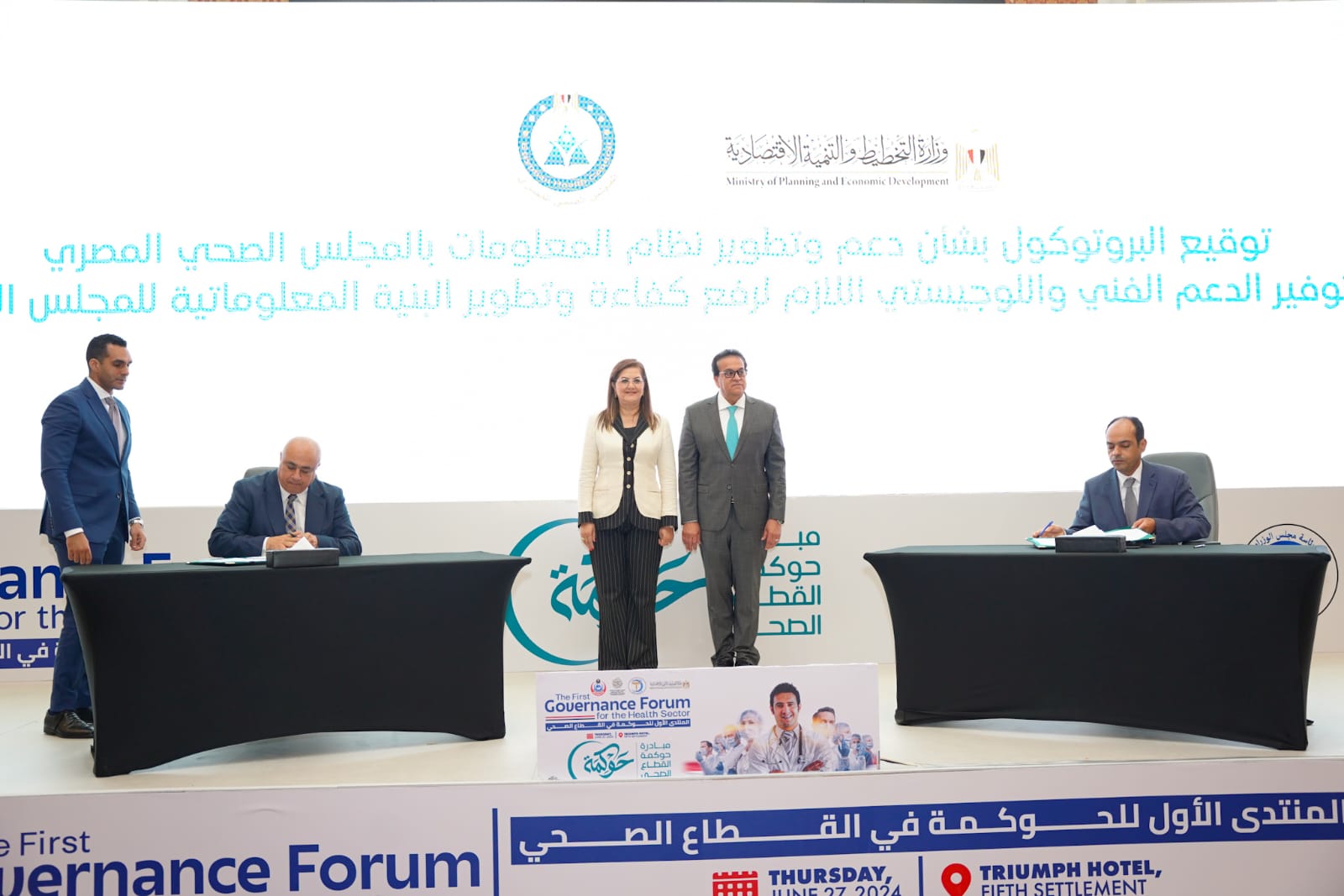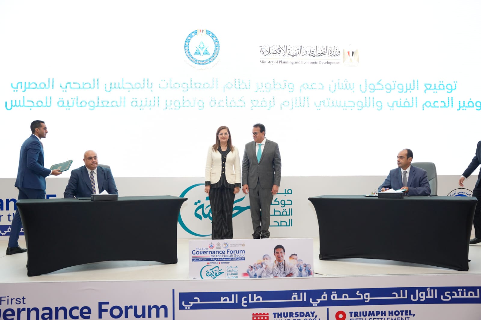 وخلال المنتدى شهدت هالة السعيد، وخالد عبد الغفار، توقيع بروتوكول تعاون بين وزارة التخطيط والمجلس الصحي المصري بشأن دعم وتطوير نظام المعلومات بالمجلس الصحي المصري، وآخر بين وزارة الصحة والمعهد القومي للحوكمة والتنمية المستدامة بشأن التعاون المشترك في تصميم وتنفيذ أنشطة دعم وتعزيز حوكمة قطاع الخدمات الصحية بجمهورية مصر العربية، بالإضافة إلى توقيع برتوكول تعاون بين وزارة الصحة وهيئة الاعتماد والرقابة بشأن إعداد البرامج التدريبية في مجال الاعتماد والرقابة الصحية للعاملين بالحكومة والمراجعة الداخلية بوزارة الصحة
