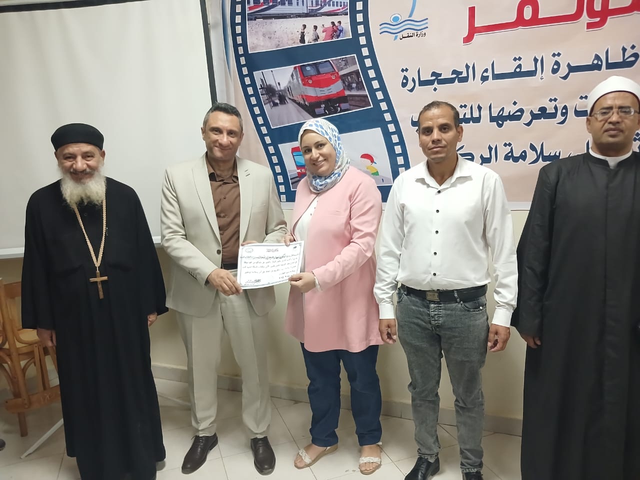 جاء ذلك بحضور عدد من قيادات هيئة السكة الحديد والسيد اللواء أحمد مصطفى السايس – رئيس مجلس مدينة بنى مزار والسيد المهندس هانى الخولى – نائب رئيس المجلس والشيخ أحمد حسن – مدير أوقاف بنى مزار والشيخ محمود محمد – إمام بوزارة الأوقاف والقمص / هدرا راشد – كاهن كنيسة بنى مزار وعدد من الرائدات الريفيات بوزارة التضامن لتوعية الأسر بالمنازل وعدد من الأهالى والمواطنين.