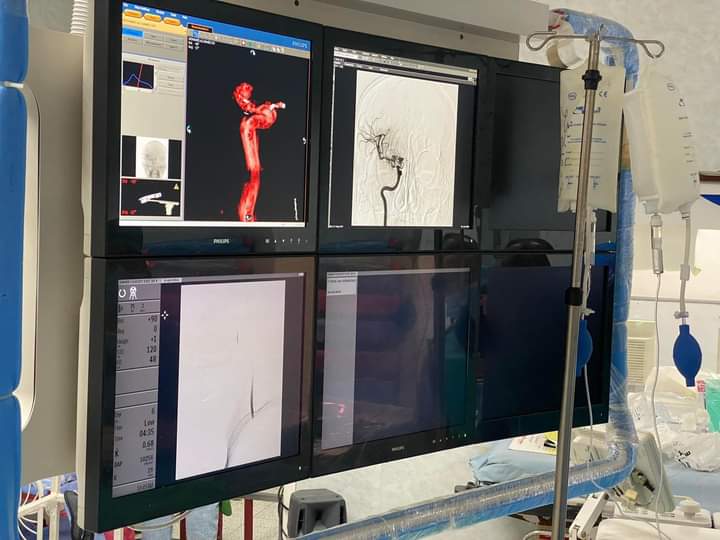 وبمشاركة فريق القسطرة المخية بالجامعة تحت إشراف كل من:- الدكتور إبراهيم المنشاوي رئيس قسم المخ والأعصاب، الدكتور مها بلال رئيس قسم الأشعة التشخيصية، الدكتور حاتم بدر رئيس قسم جراحة المخ والأعصاب، الدكتور محمد على قاسم أستاذ طب المخ والأعصاب، الدكتور أشرف عبد المنعم أستاذ طب المخ والأعصاب، الدكتور وسام فتحي أستاذ مساعد بقسم طب المخ والأعصاب.