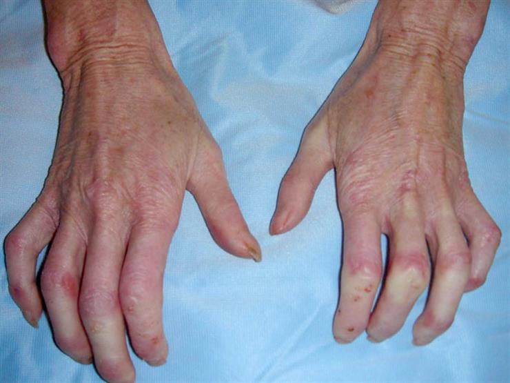 - تصلب الجلد: يمكن أن يحدث تصلب وتثخن الجلد، خاصة في الأصابع واليدين، مما يسبب صعوبة في الحركة.