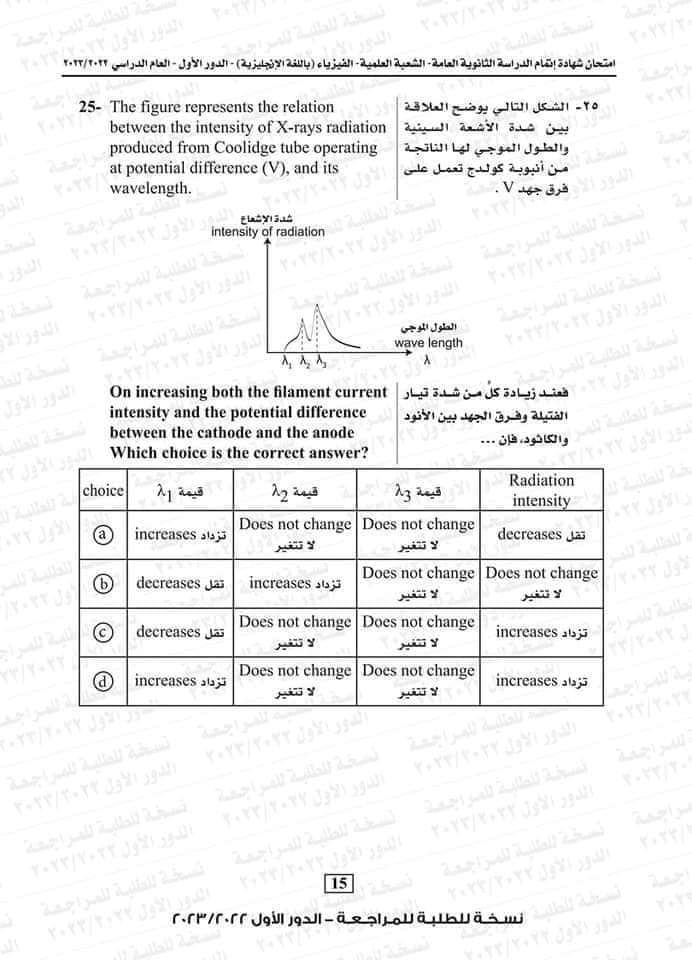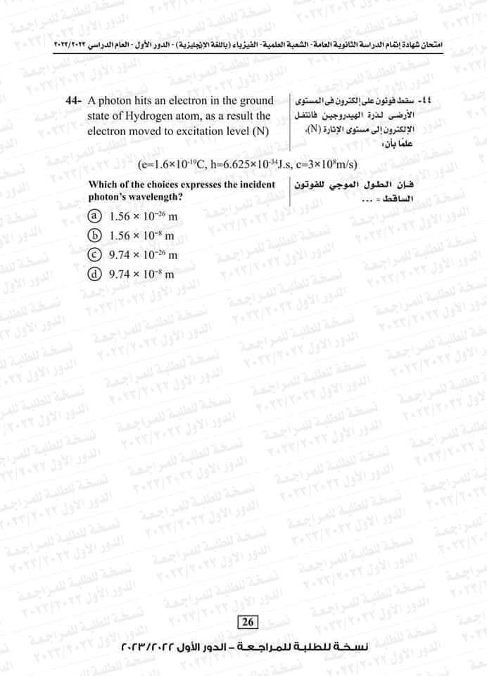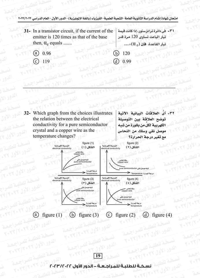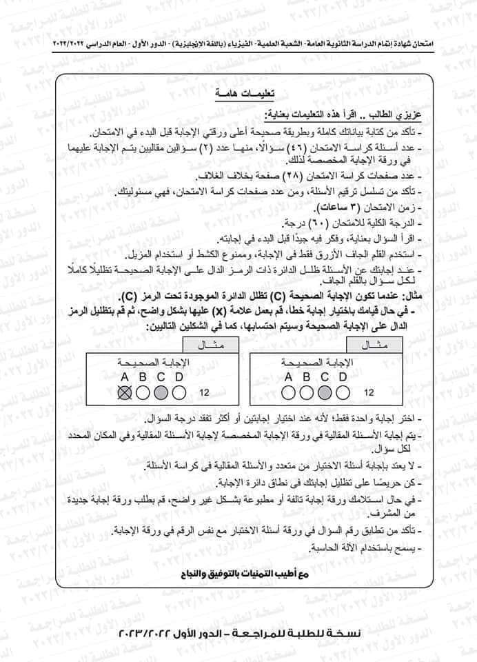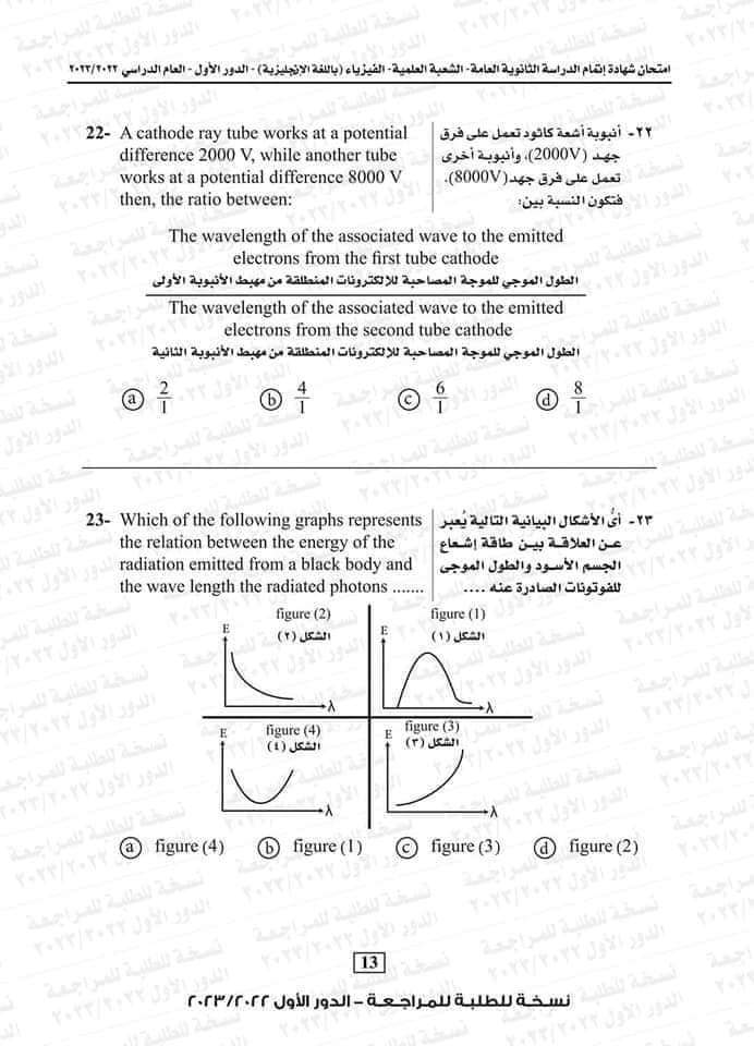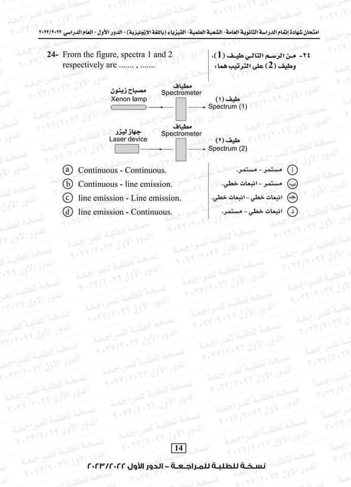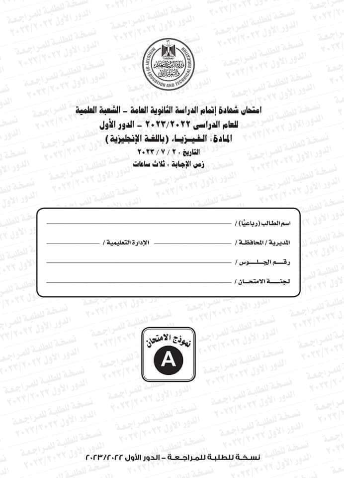 الثانوية العامة 2024، امتحان الفيزياء لغات 2023