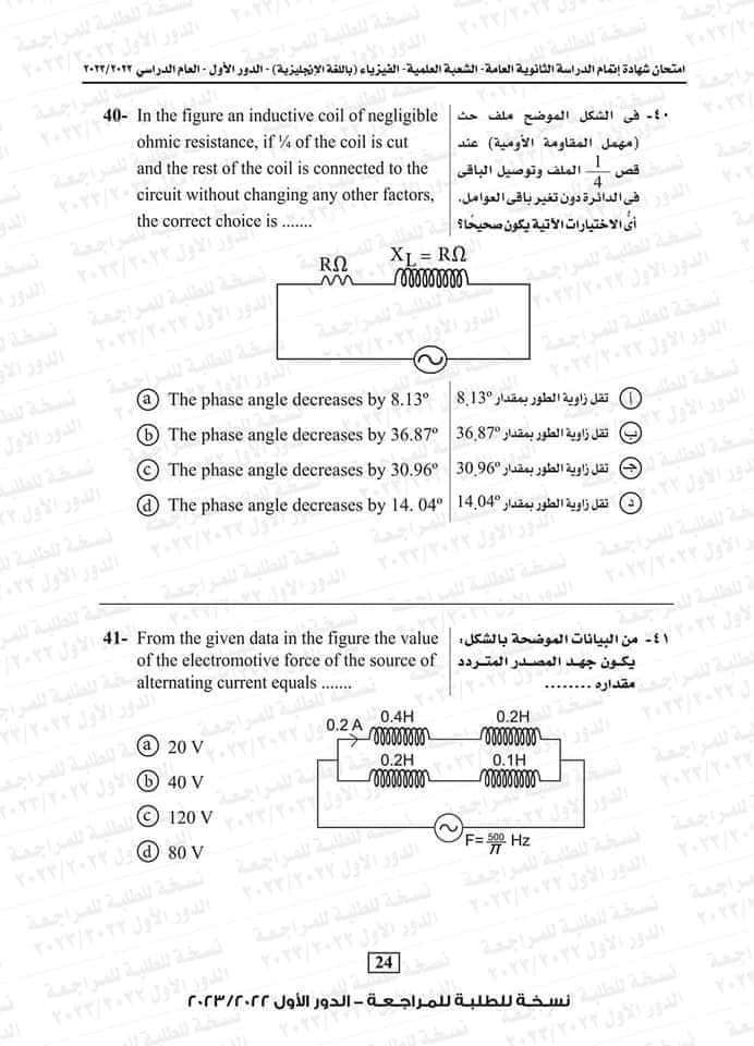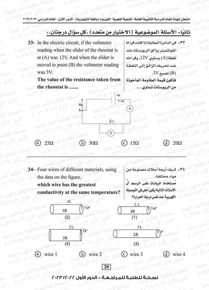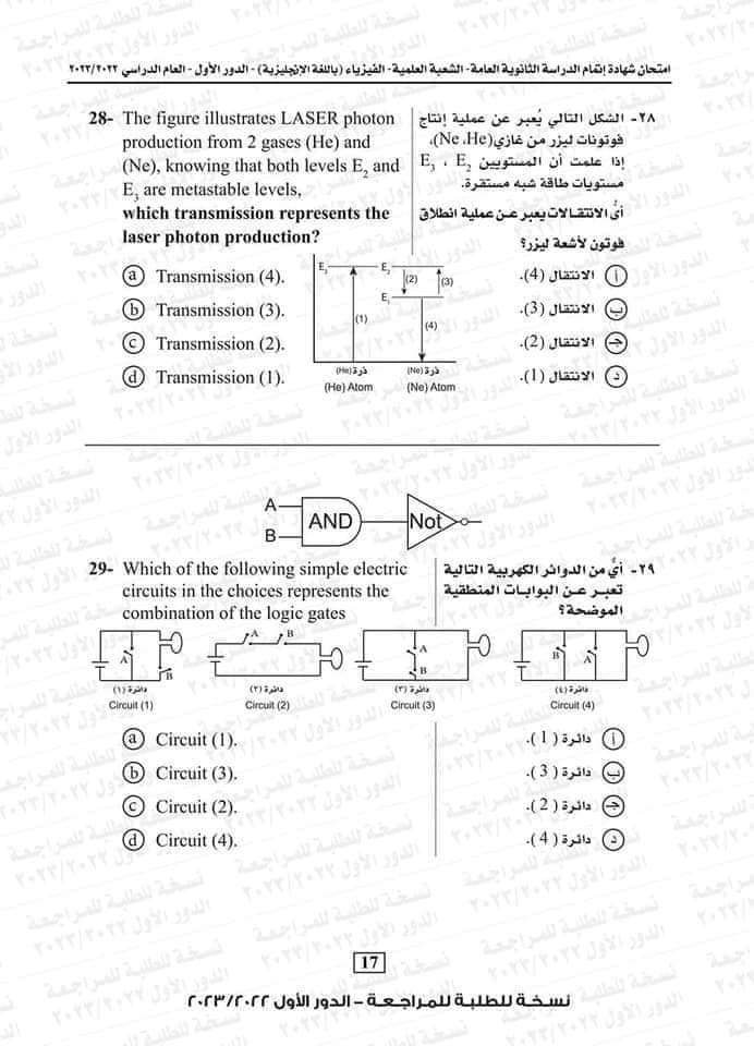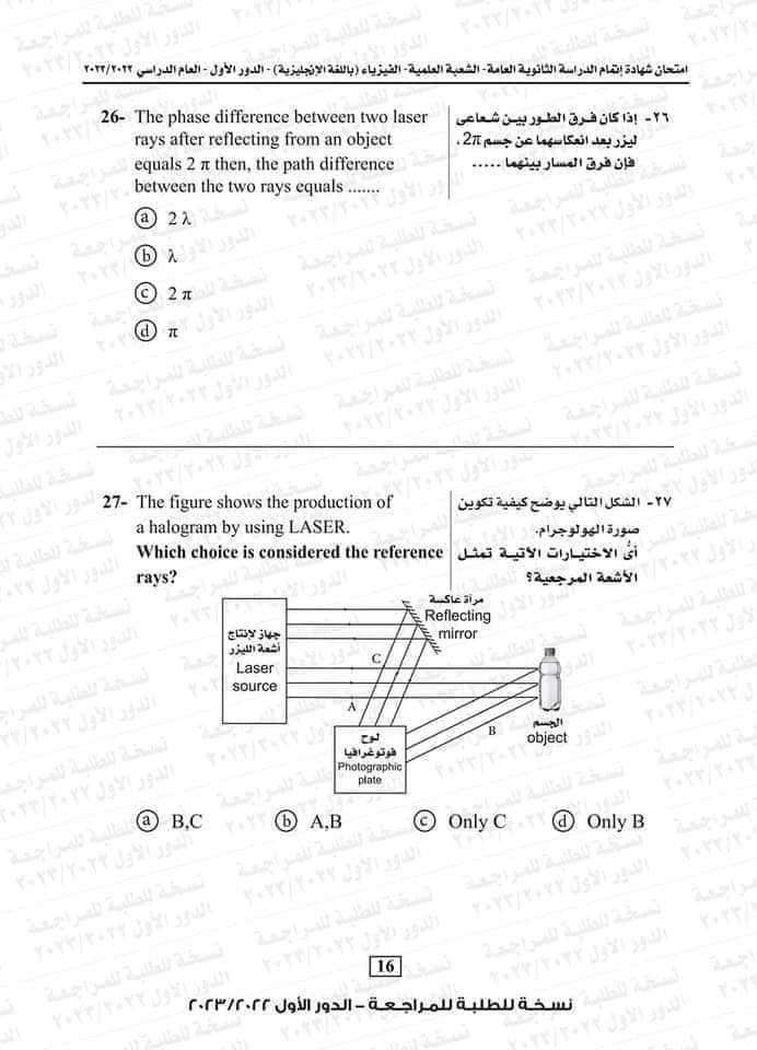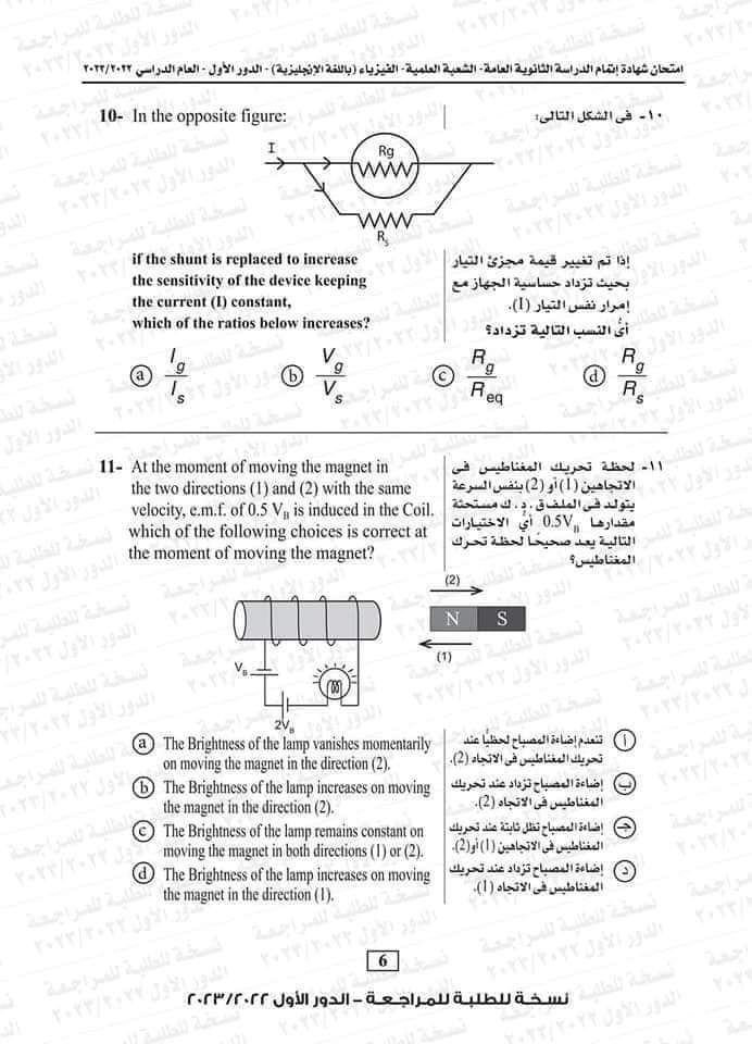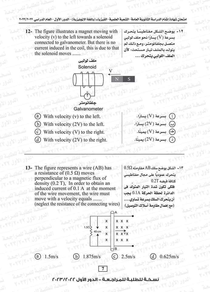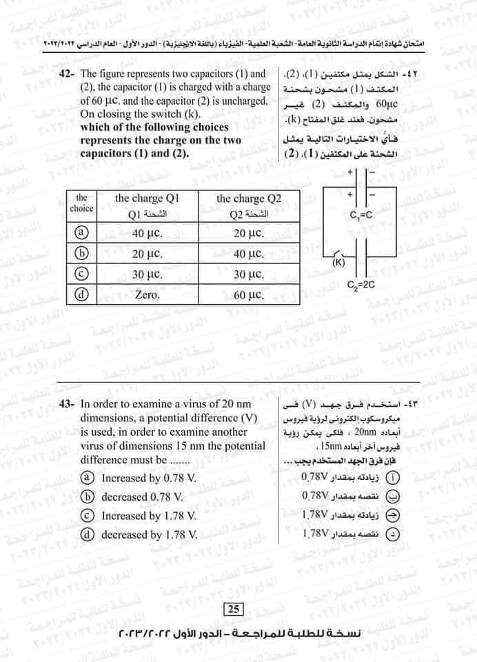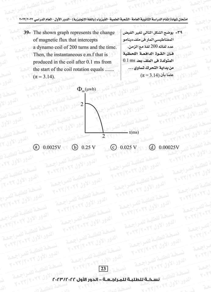 الثانوية العامة 2024، امتحان الفيزياء لغات 2023