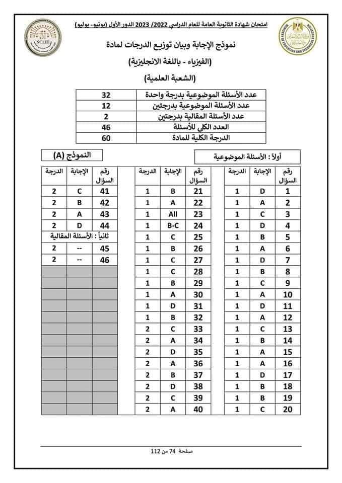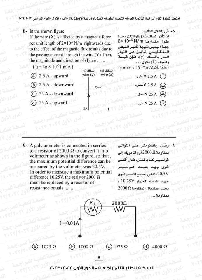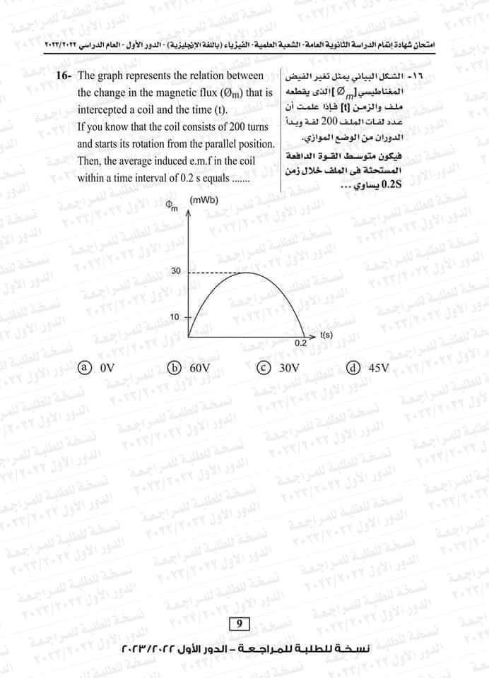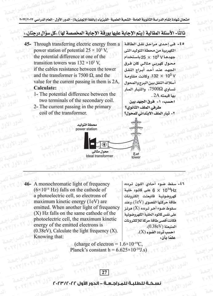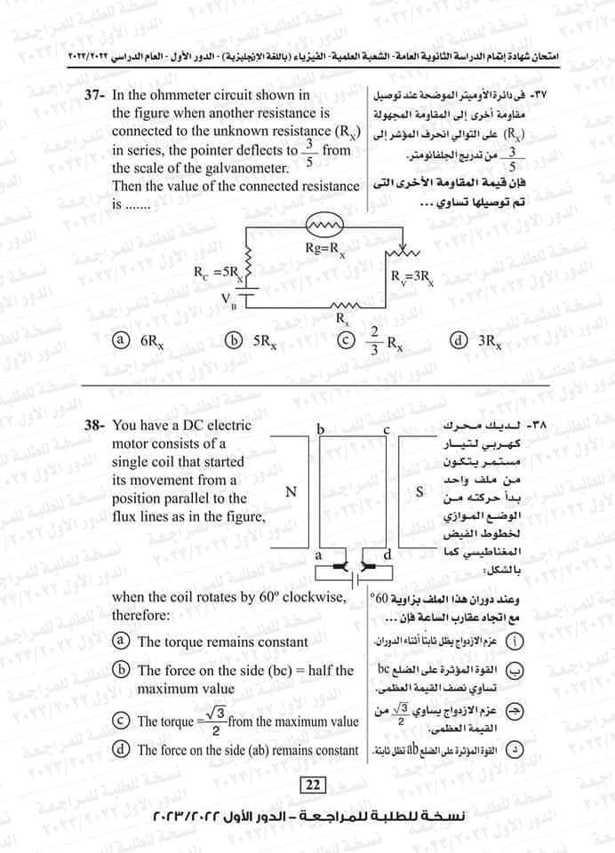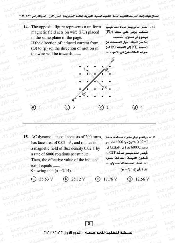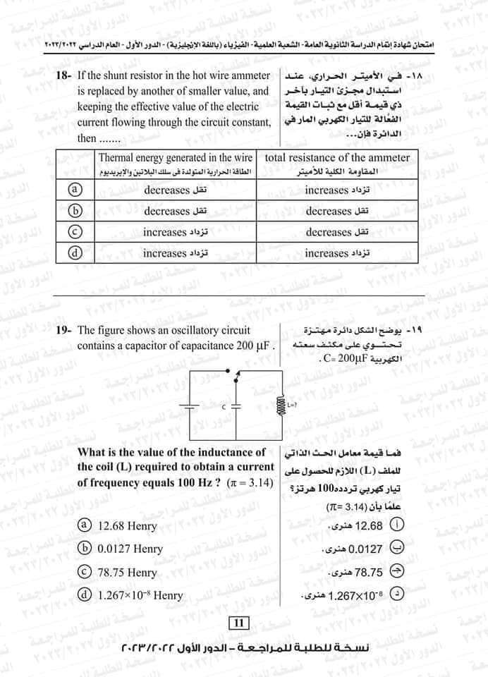الثانوية العامة 2024، امتحان الفيزياء لغات 2023