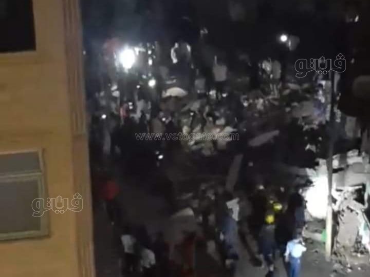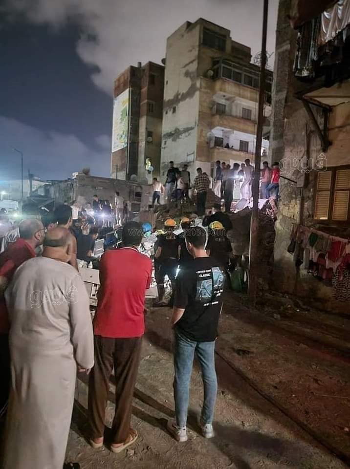 انهيار عقار مكون من 4 طوابق بنطاق حي المناخ، بمحافظة بورسعيد، وأنباء عن وجود سكان تحت الأنقاض.