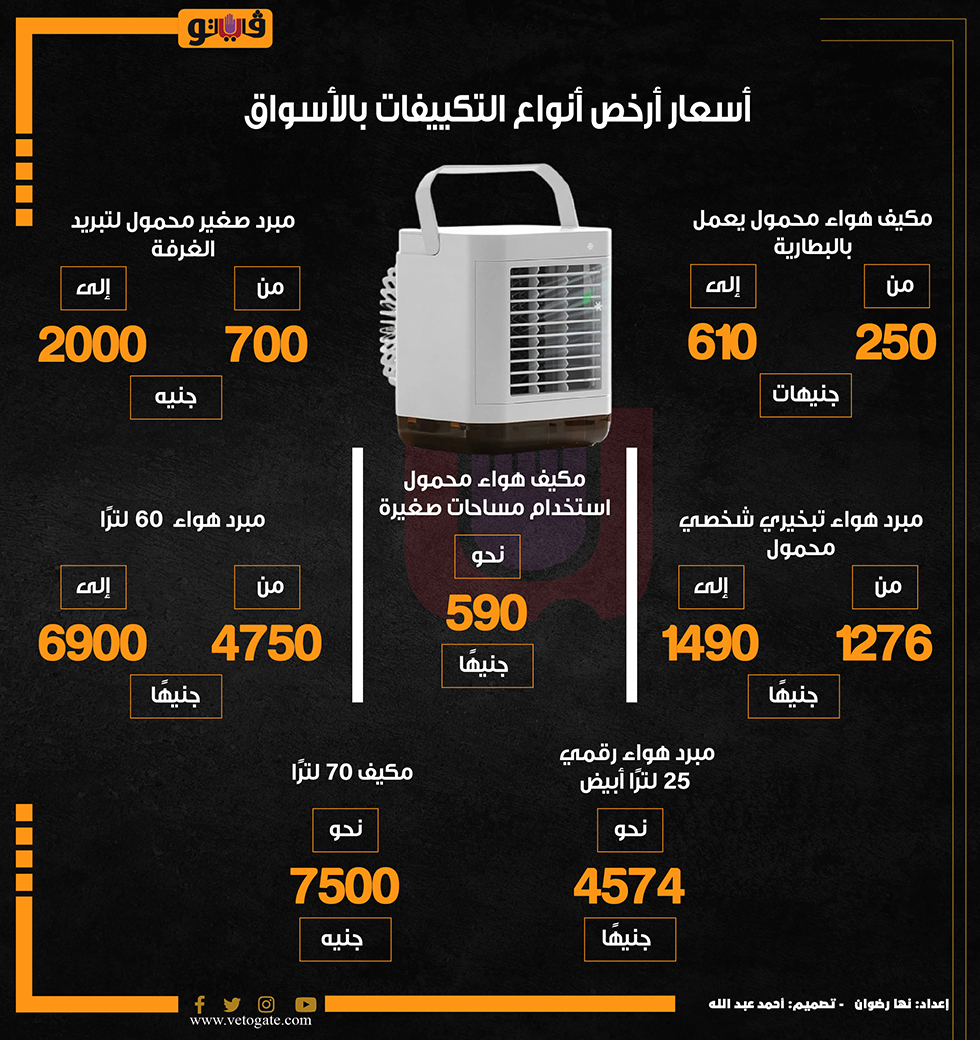 أسعار أرخص أنواع التكييفات بالأسواق (انفوجراف) الأحد 30/يونيو/2024 - 01:48 م 6/30/2024 1:48:27 PM أسعار التكييفات بالأسواق، فيتو نها رضوان شارك طباعة 18 حجم الخط شارك طباعة أرخص أنواع التكييفات جهاز تكييف سعر تكييف مكيف هواء اسعار التكييف سعر التكييف اسعار التكييفات سعر التكييفات سعر تكييف محمول أسعار التكييف المحمول سعر التكييف المتنقل