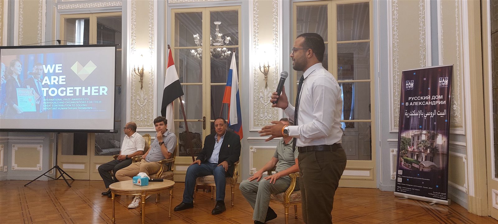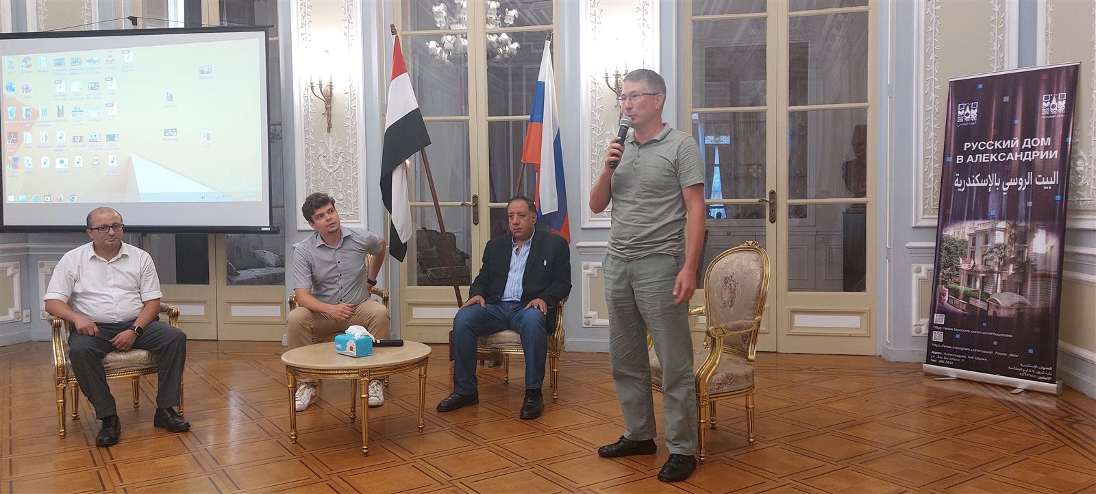جاء ذلك خلال لقاء بالبيت الروسي في الإسكندرية بحضور مارتن جاتين مدير المراكز الروسية بمصر وأرسيني ماتيوسشينكو مدير المركز الثقافي الروسي بالإسكندرية، رزق الطرابيشي نقيب الصحفيين بالإسكندرية.
