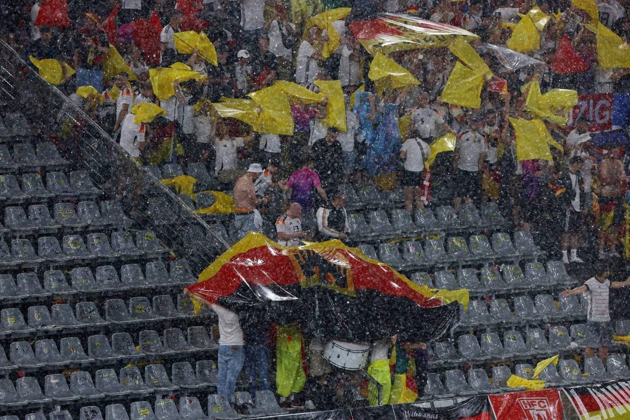 وكانت مباراة منتخب ألمانيا، ضد الدنمارك عادت للاستئناف مرة أخرى بعد توقفها ربع ساعة بسبب الأحوال الجوية.