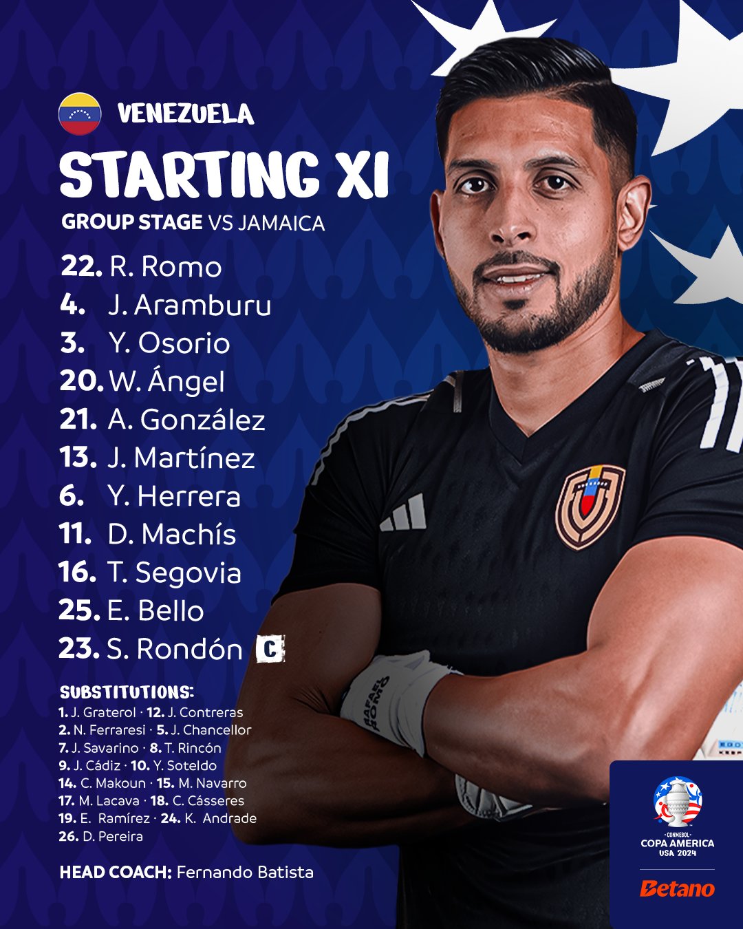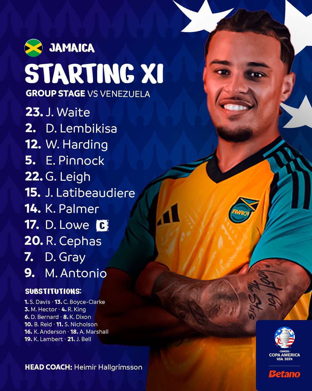 كوبا أمريكا 2024، التشكيل الرسمي لمباراة جامايكا وفنزويلا