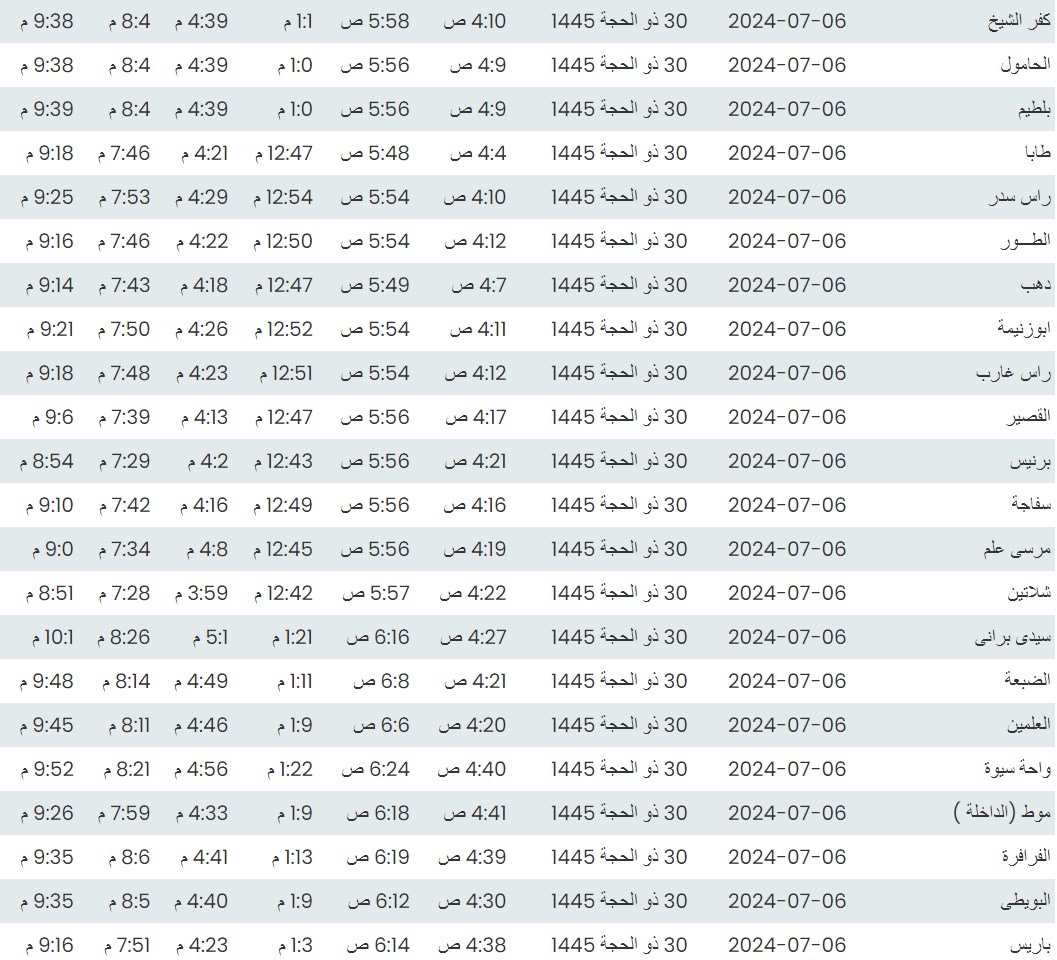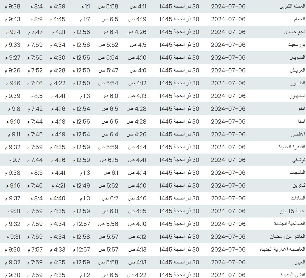 وفيما يلي مواقيت الصلاة، لعدد من مدن ومحافظات الجمهورية من واقع بيانات الهيئة العامة للمساحة