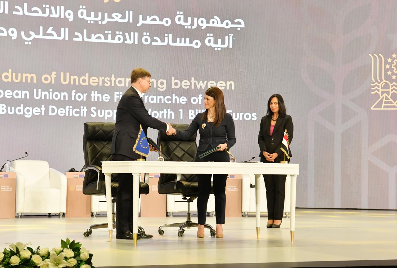 - شهد الرئيس السيسي مراسم توقيع مذكرة تفاهم بين جمهورية مصر العربية والاتحاد الأوروبى الخاصة بالشريحة الأولى من آلية مساندة الاقتصاد الكلى ودعم عجز الموازنة بقيمة مليار يورو.