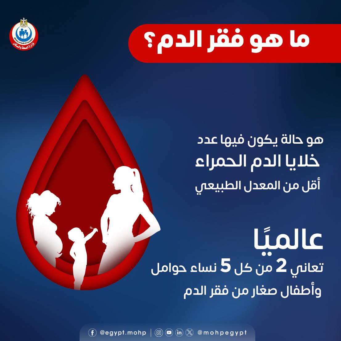 وحذرت وزارة الصحة من الإصابة بفقر الدم موجهة نصائح للسيدات الحوامل والأمهات بالحرص على ضرورة توفير غذاء صحي متوازن غني بالحديد لمنع الإصابة بفقر الدم.