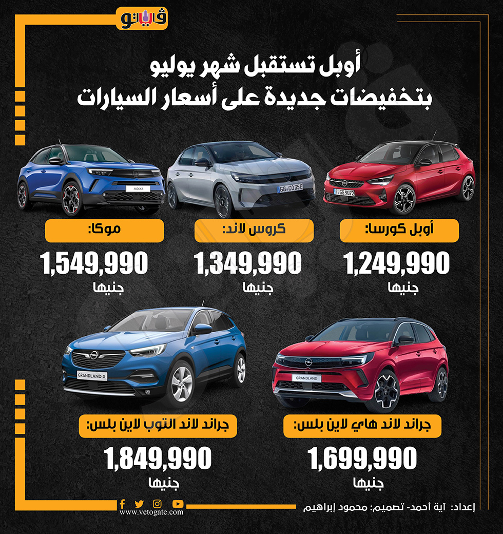 أوبل تستقبل شهر يوليو بتخفيضات جديدة على أسعار السيارات (إنفوجراف) الثلاثاء 02/يوليو/2024 - 11:31 ص 7/2/2024 11:31:24 AM سيارات آية أحمد شارك طباعة 18 حجم الخط شارك طباعة أوبل جراند لاند اوبل كروس لاند اوبل كورسا