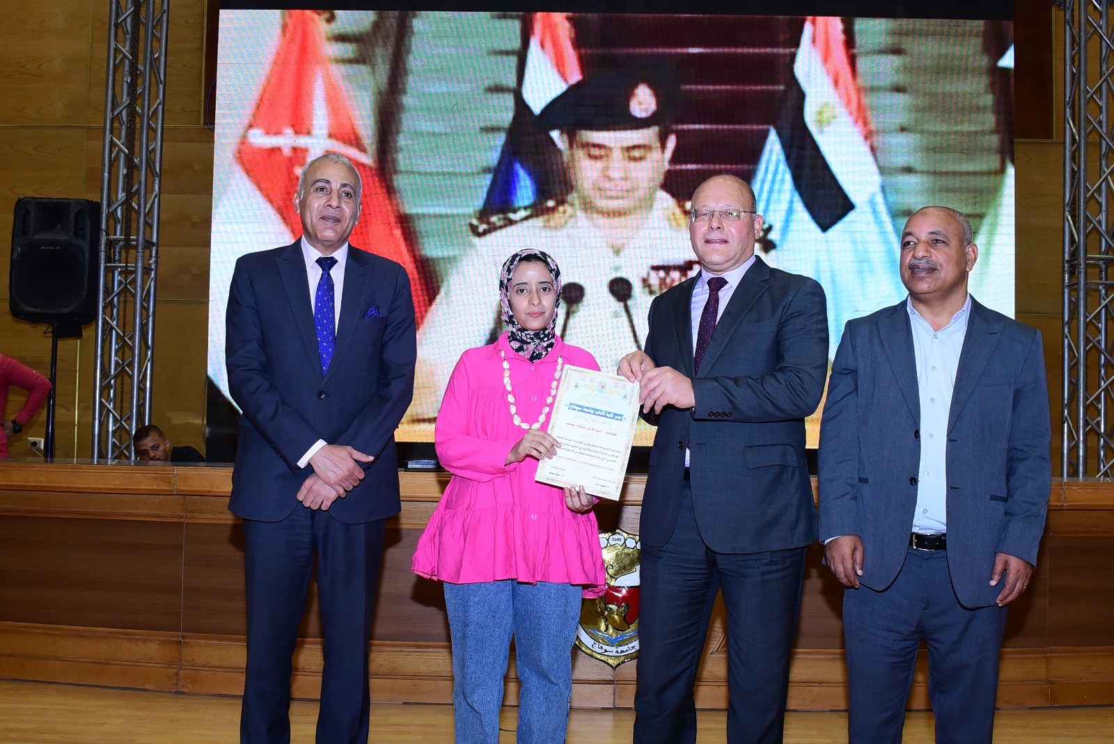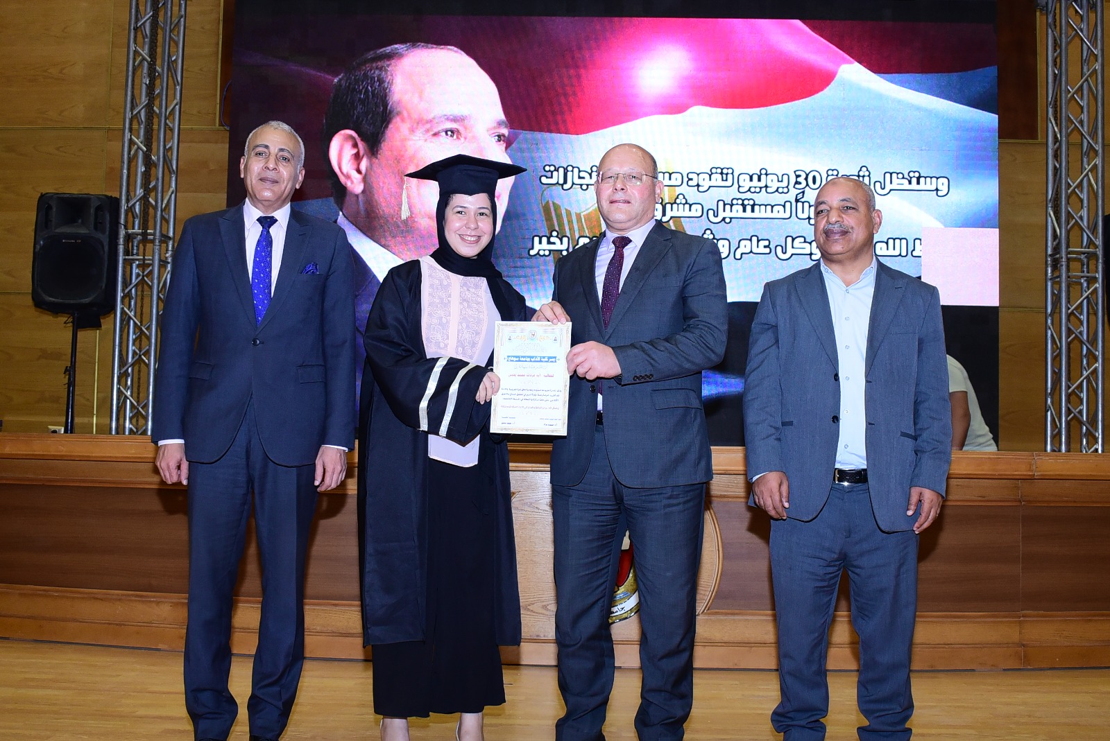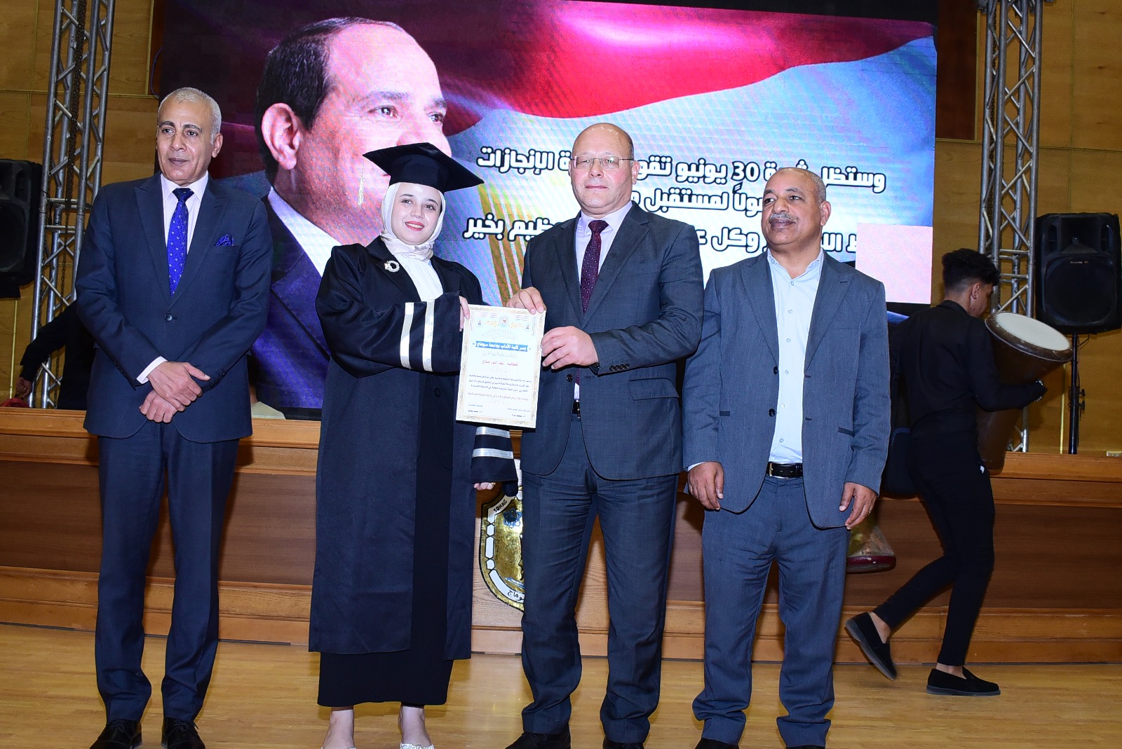 كرم الدكتور حسان النعماني رئيس جامعة سوهاج ٦٥ طالبا وطالبة من طلاب الدفعة رقم ٤٥ بقسم الإعلام بشعبتيه الصحافة والعلاقات العامة بكلية الآداب للعام الجامعي٢٠٢٤/٢٠٢٣، بحضور الدكتور عبدالناصر يس نائب رئيس الجامعة لشئون التعليم والطلاب، الدكتور خالد عمران نائب رئيس الجامعة لشئون خدمة المجتمع وتنمية البيئة، الدكتور محمد توفيق عميد كلية الآداب، المحاسب أشرف القاضي أمين عام الجامعة، الدكتورة سحر وهبي الأستاذ المتفرغ بقسم الإعلام، الدكتورة فاطمة الزهراء صالح رئيس قسم الإعلام ونخبة من أساتذة القسم ومعاونيهم، في احتفالية أقيمت بقاعة قناة السويس بالمركز الدولي للمؤتمرات بالحرم الجامعي الجديد.