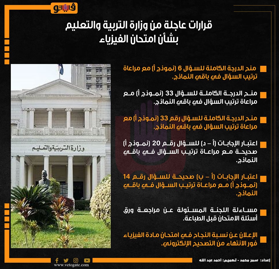 فيما زفت وزارة التربية والتعليم والتعليم الفنى، أخبار سارة بشأن امتحان مادة الفيزياء 2024، الذي أداه الطلاب يوم السبت الماضي، بعد اجتماع اللجنة الفنية المختصة بمراجعة ورق أسئلة ونموذج إجابات امتحانات الثانوية العامة.