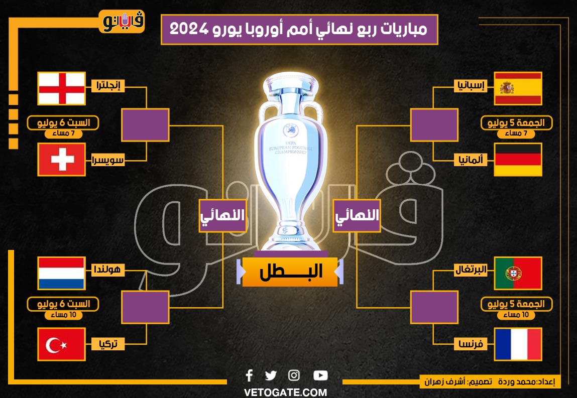 مواعيد مباريات ربع نهائي أمم أوروبا يورو 2024 (إنفوجراف)