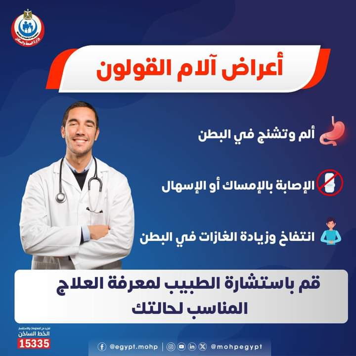 وحذرت وزارة من أعراض آلام القولون وتجاهلها دون الكشف عليها منها: