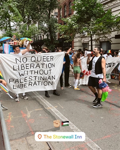 وكانت المظاهرات تهدف إلى إيقاف موكب للمثليين وإسقاط الضوء على فلسطين، ولذلك ارتدى حامد سنو وشركائه ملابس تحمل عبارة "كوير (مثلي) كما في الحرية لفلسطين". باللغتين الإنجليزية والعربية.