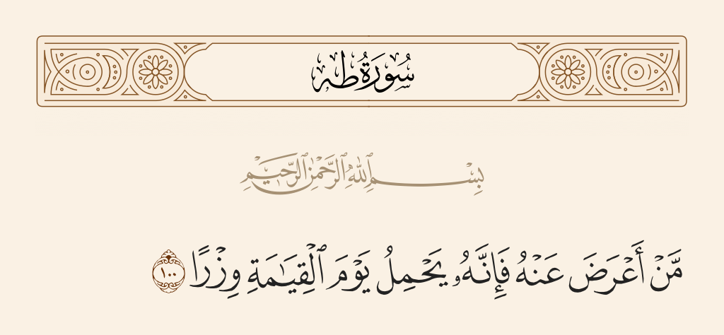 قال تعالى: «مَنْ أَعْرَضَ عَنْهُ فَإِنَّهُ يَحْمِلُ يَوْمَ الْقِيَامَةِ وِزْرًا».