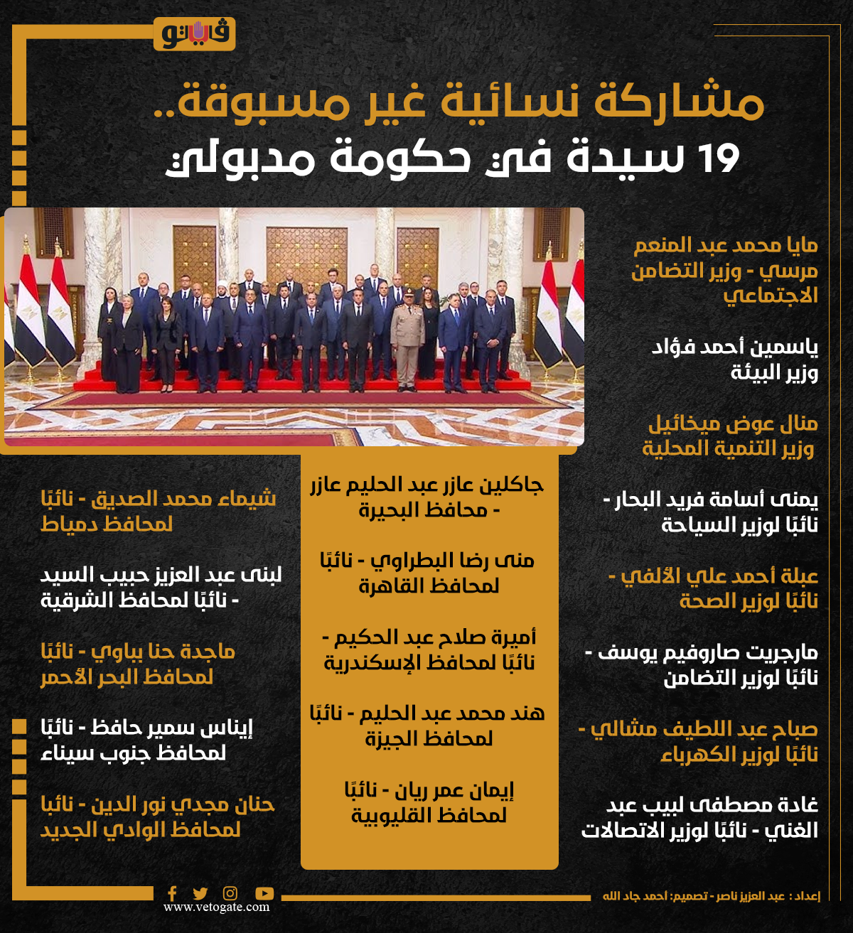 مشاركة نسائية غير مسبوقة.. 19 سيدة في حكومة مدبولي (إنفوجراف)