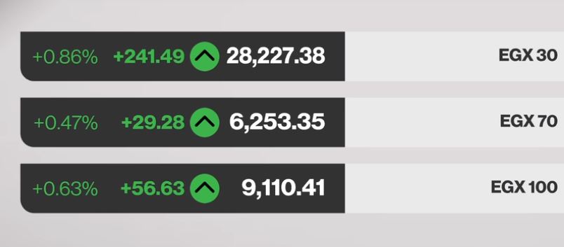 - صعد مؤشر "إيجي إكس 30" بنسبة 0.86 % عند مستوى 28.227.38 نقطة.