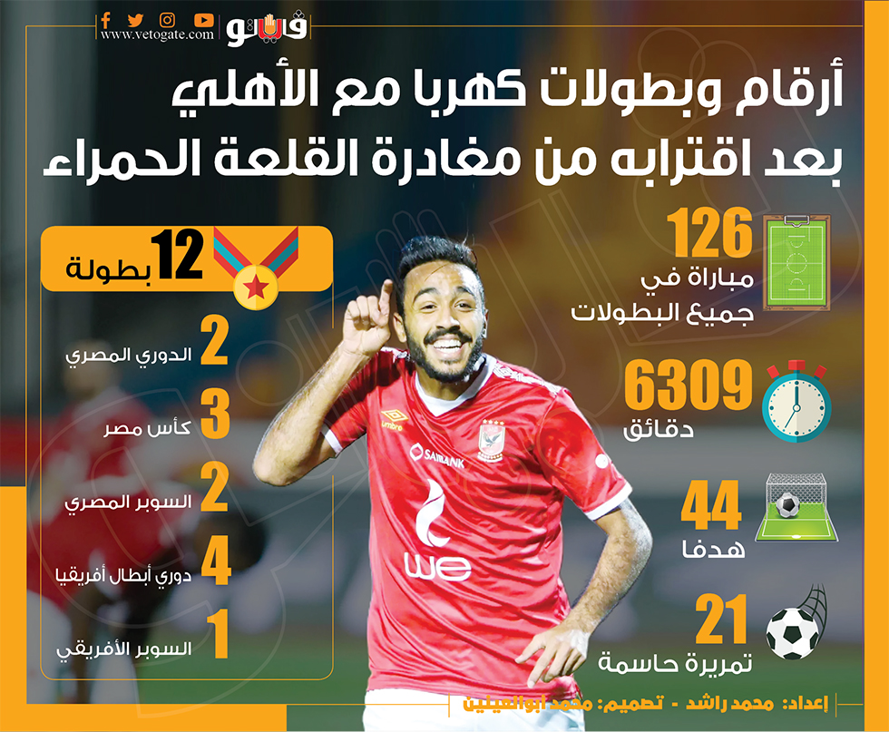 أرقام وبطولات كهربا مع الأهلي بعد اقترابه من مغادرة القلعة الحمراء (إنفوجراف) الخميس 04/يوليو/2024 - 09:44 م 7/4/2024 9:44:22 PM كهربا لاعب النادي الأهلي، فيتو محمد راشد شارك طباعة 18 حجم الخط شارك طباعة الأهلي النادي الأهلي كهربا كولر مارسيل كولر