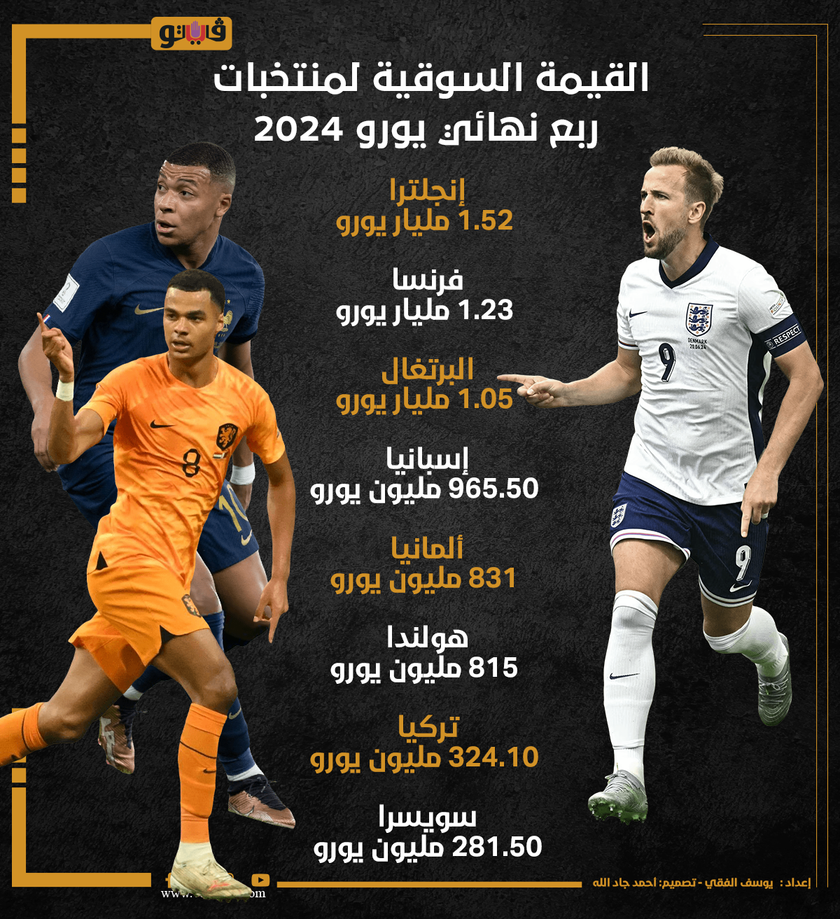 القيمة السوقية لمنتخبات ربع نهائي يورو 2024 (انفوجراف) الخميس 04/يوليو/2024 - 11:49 ص 7/4/2024 11:49:47 AM يورو 2024 يوسف الفقي شارك طباعة 18 حجم الخط شارك طباعة يورو 2024 ربع نهائي يورو 2024 منتخبات ربع نهائي يورو 2024 القيمة السوقية لمنتخبات ربع نهائي يورو 2024