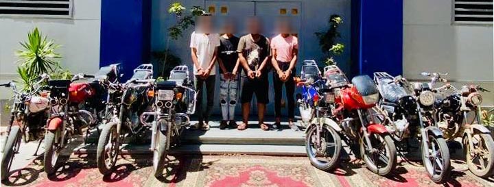 كما تم ضبط تشكيل عصابى مكون من ( 4 عاطلين "لإثنين منهم معلومات جنائية" مقيمين بدائرة مركز شرطة المنصورة) تخصص نشاطهم الإجرامي في إرتكاب وقائع سرقة الدراجات النارية بأسلوب "توصيل الأسلاك الكهربائية".. وبحوزتهم (2 بندقية خرطوش - عدد من الطلقات - 3 دراجات نارية 2 مركبة "توك توك" مُبلغ بسرقتهما - الأدوات المستخدمة).