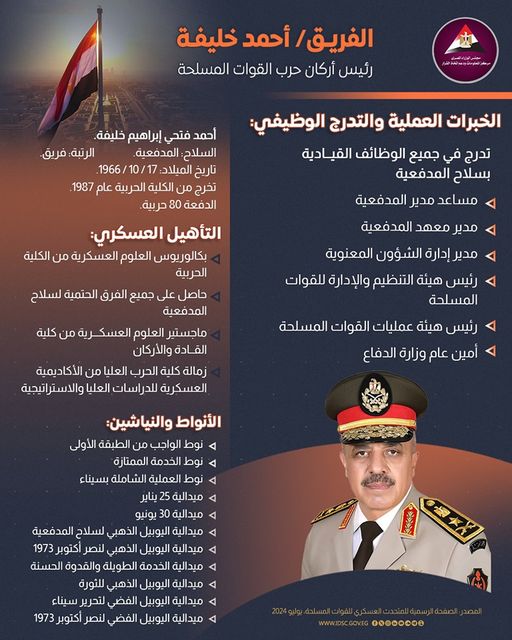 الوظائف والمؤهلات العلمية لرئيس أركان حرب القوات المسلحة (إنفوجراف)