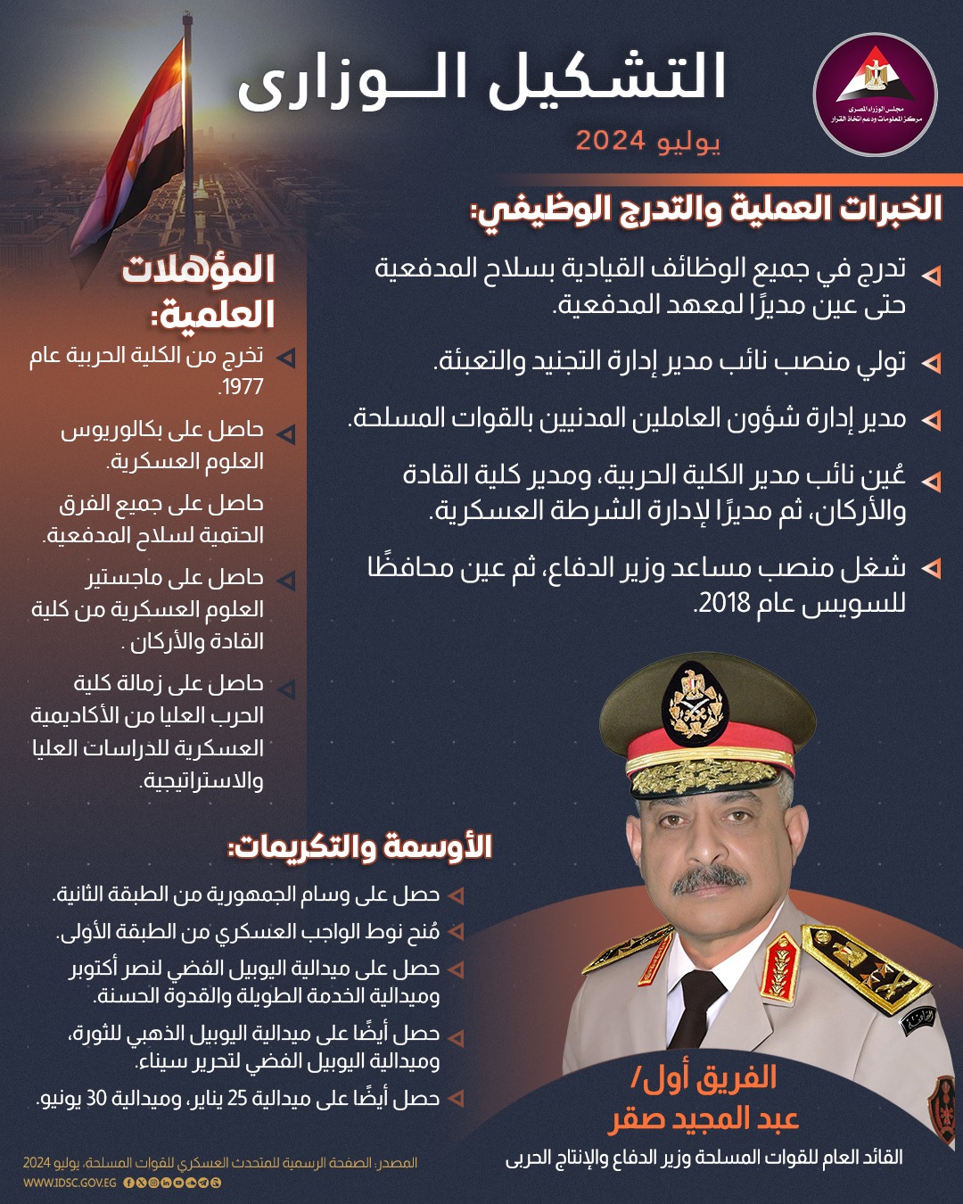 الوظائف والمؤهلات العلمية للفريق أول عبد المجيد صقر وزير الدفاع (إنفوجراف)