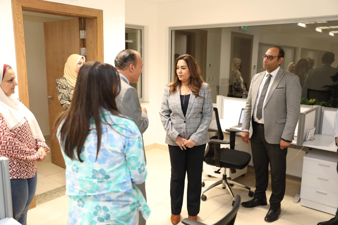 وزيرة التنمية المحلية تقوم بجولة للتعرف على الموظفين والعاملين بالإدارات المختلفة