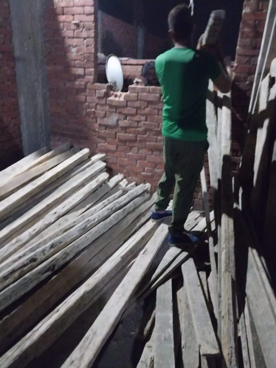 تم فك شدة خشبية لسقف بالدور الثالث علوى على مساحة ١٣٠ مترًا بقرية ميت أبو خالد.