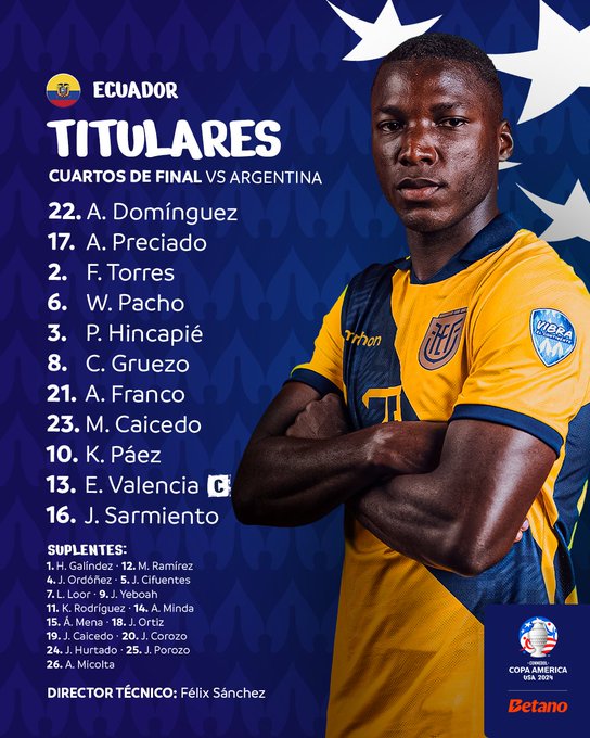 أما تشكيل منتخب الإكوادور فقد جاء كالتالي: