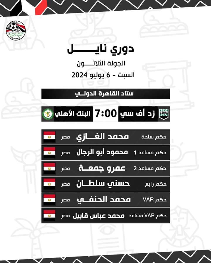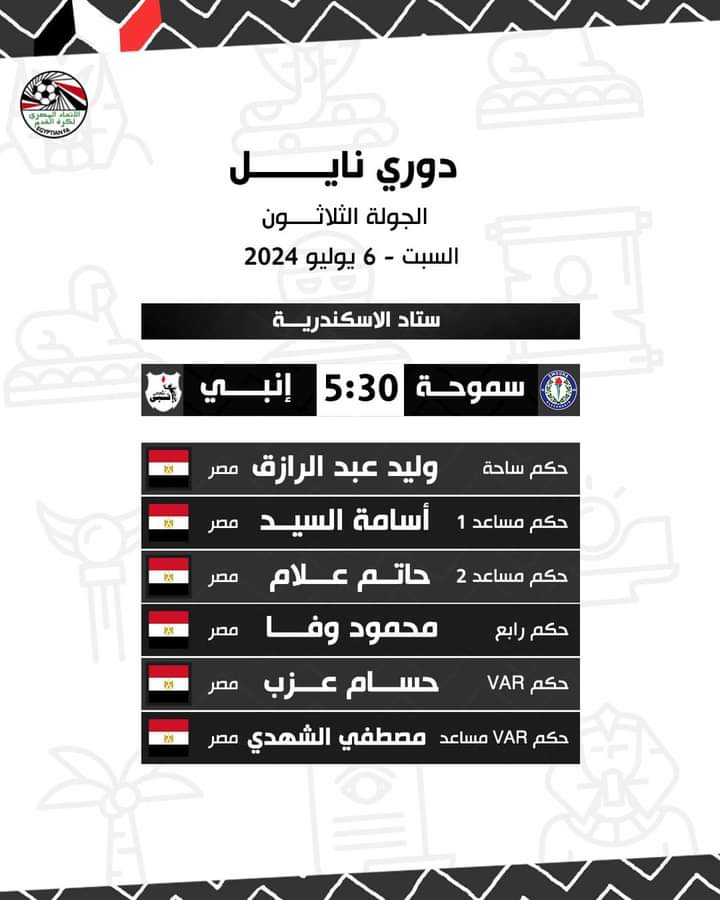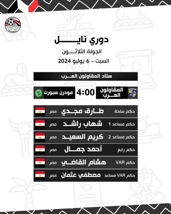 الدوري المصري، حكام مباريات اليوم السبت