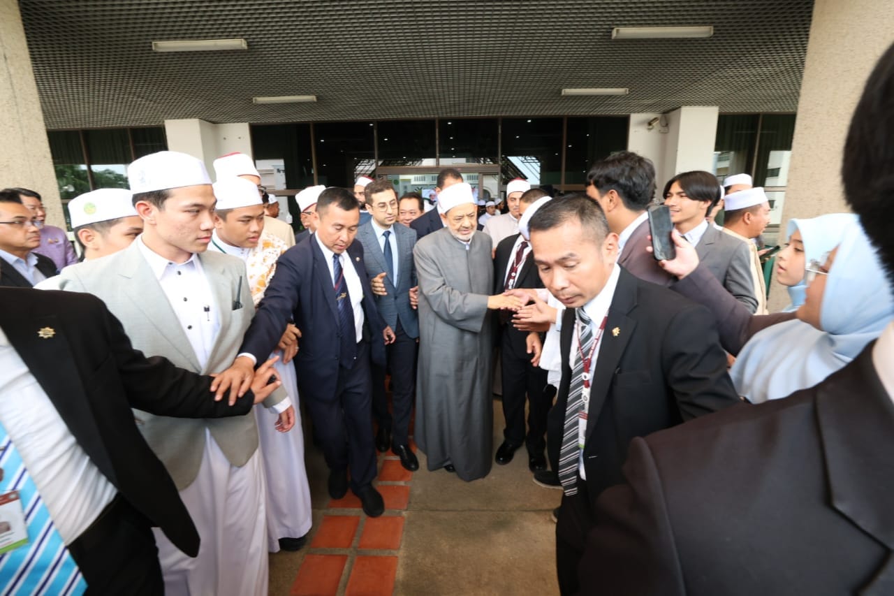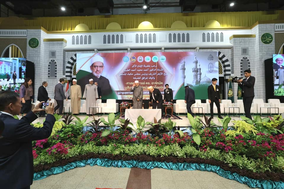 نظَّم المركز الإسلامي بالعاصمة التايلاندية بانكوك لقاءً جماهيريًّا لفضيلة الإمام الأكبر الدكتور أحمد الطيب، شيخ الأزهر الشريف، رئيس مجلس حكماء المسلمين، بمسلمي تايلاند؛ حيث حرص آلاف المسلمين التايلانديين على الحضور من ٤٥ محافظة، بحضور الشيخ آرون بون شؤم (محمد جلال الدين بن حسين)، رئيس هيئة كبار العلماء في مملكة تايلاند، وكبار القيادات الدينيَّة في تايلاند، وأئمة تايلاند.